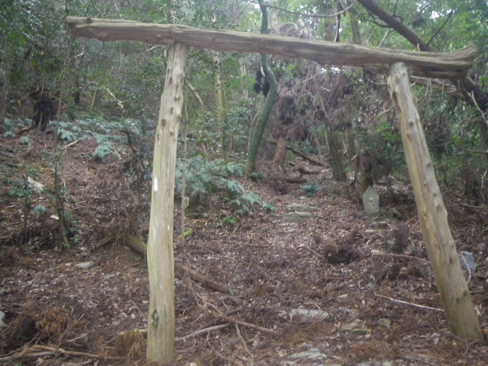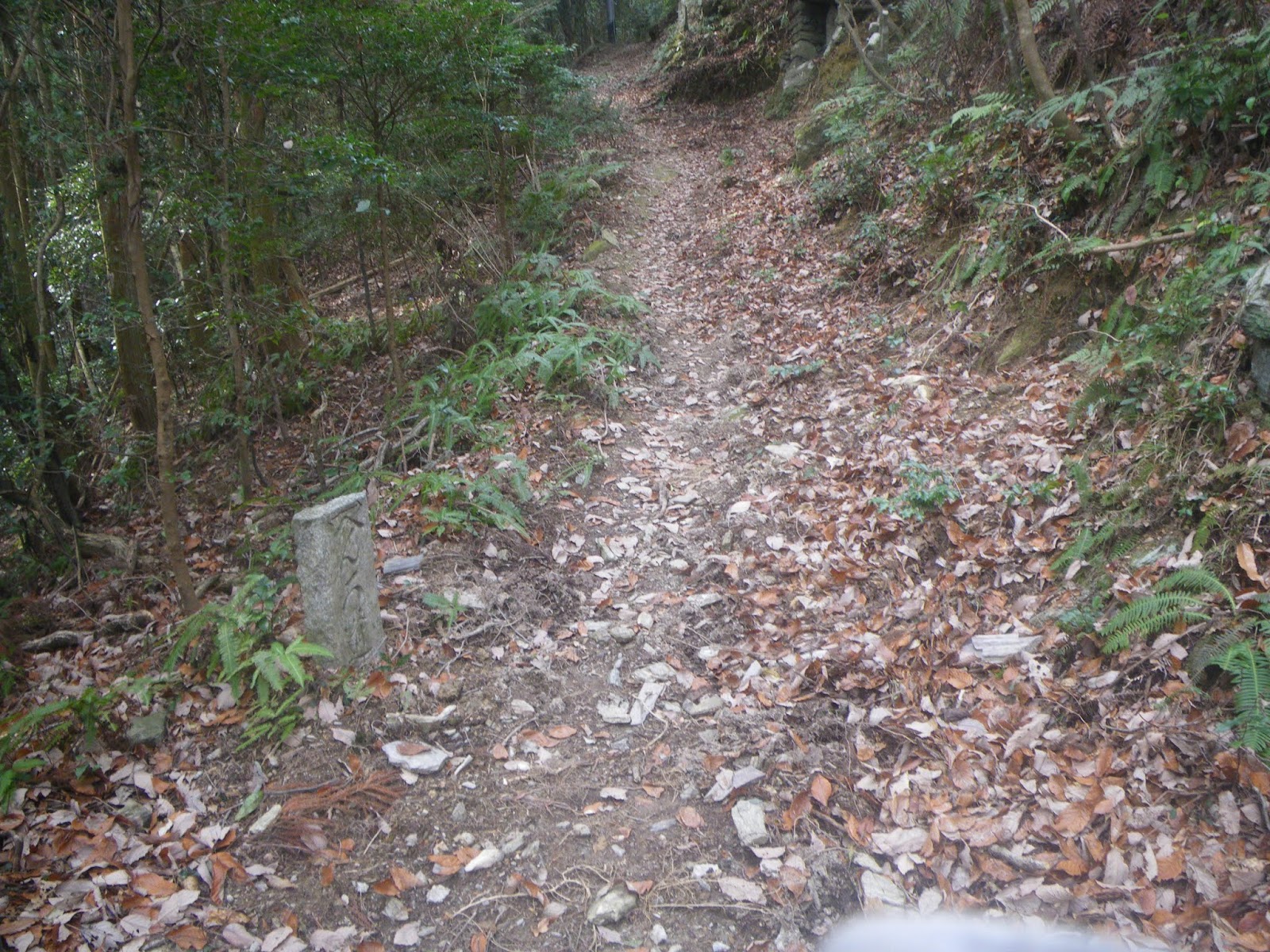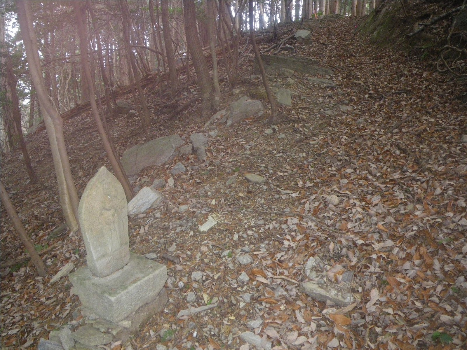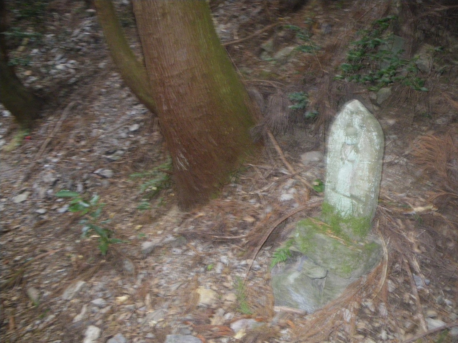 足を踏み入れる前は、人里離れた山道をはっきりとしたルート図もなく歩くのはかなわん、などと思っていはいたのだが、上りの道筋の半分近くは山麓の集落を抜ける道であり気持ちも楽に歩けた。下りの鎖場は多くの記事にあるような「難所」といったものでもなく、危険と感じるところも特に無かった。只、下りは荒れた沢筋の道であり、沢筋に立つ四国霊場本尊石仏を目安に下る箇所もいくつかあったが、ルーティングにそれほど困ることもないかと思う。