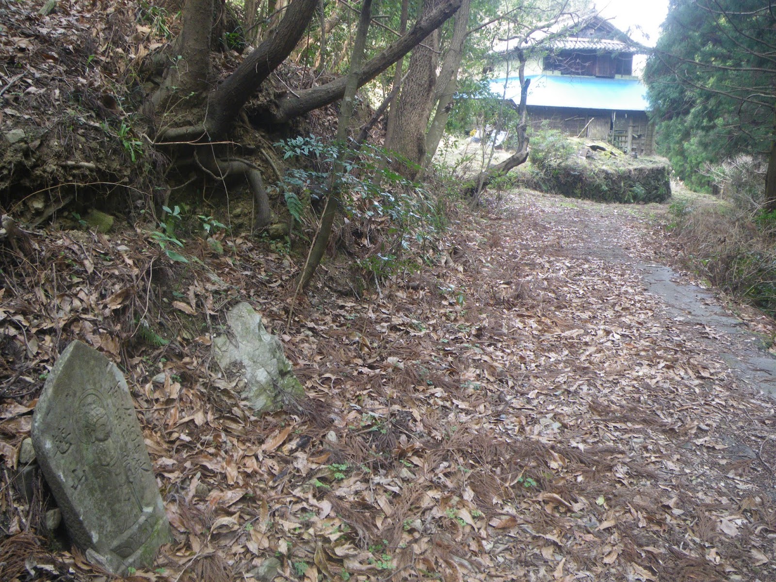 集落の車道を逸れ遍路道に