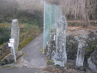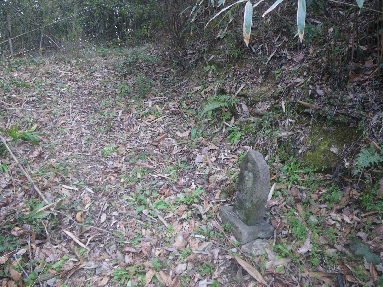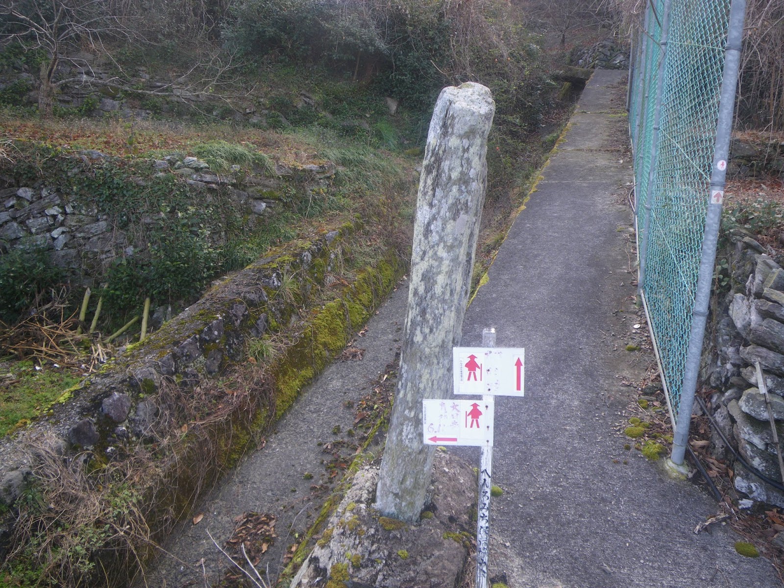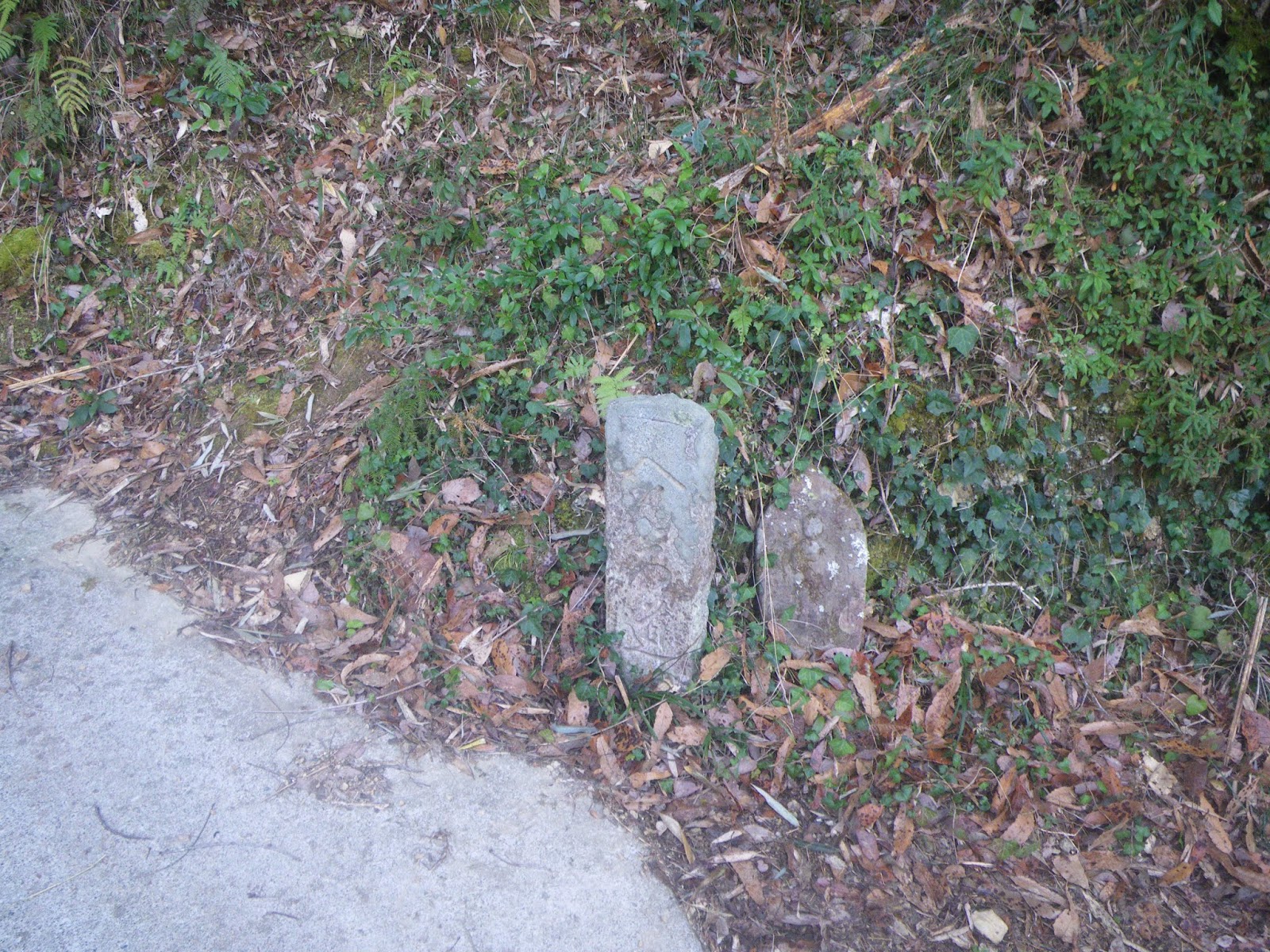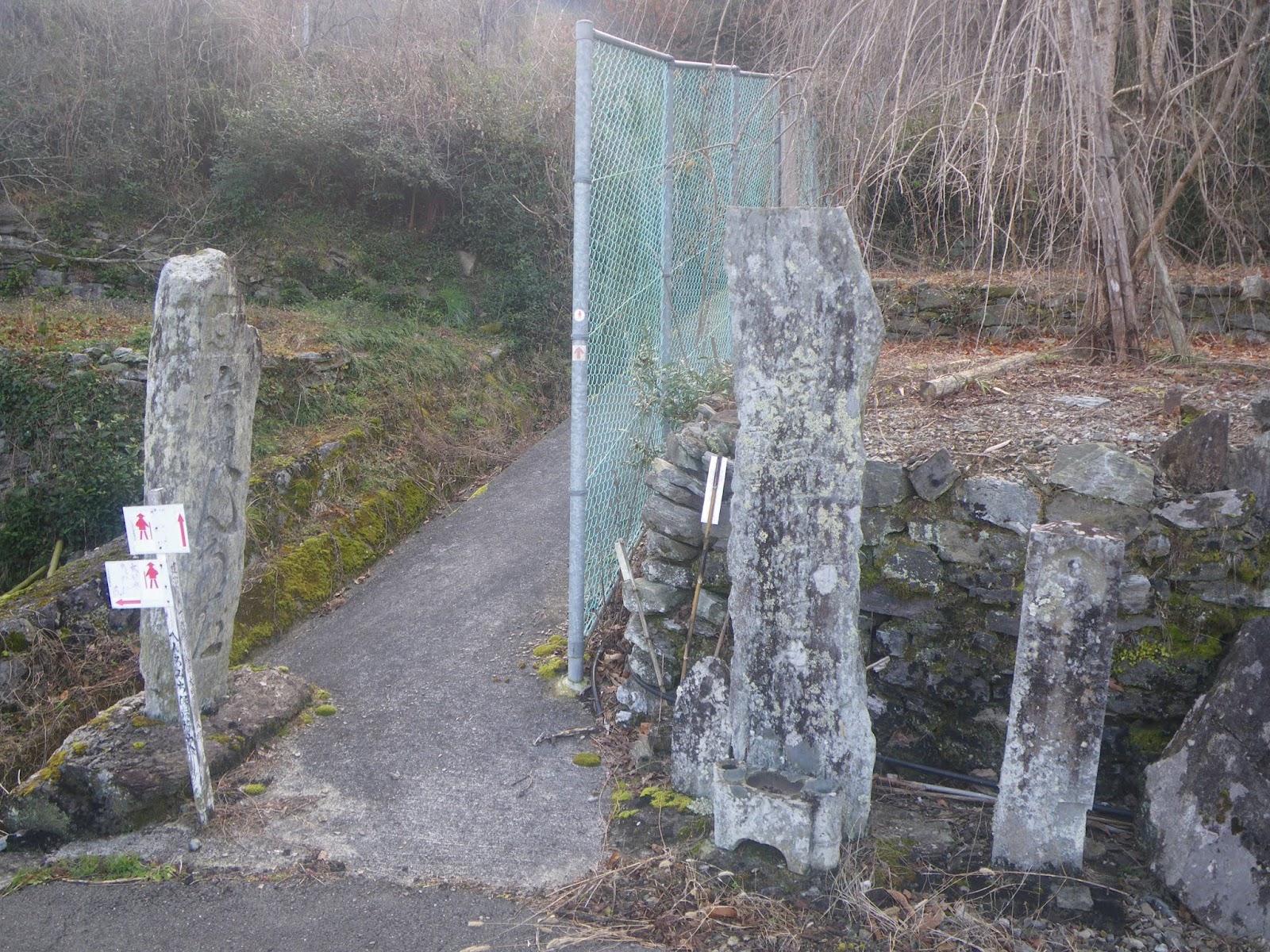 遍路道分岐点に3基の石柱