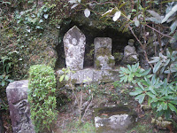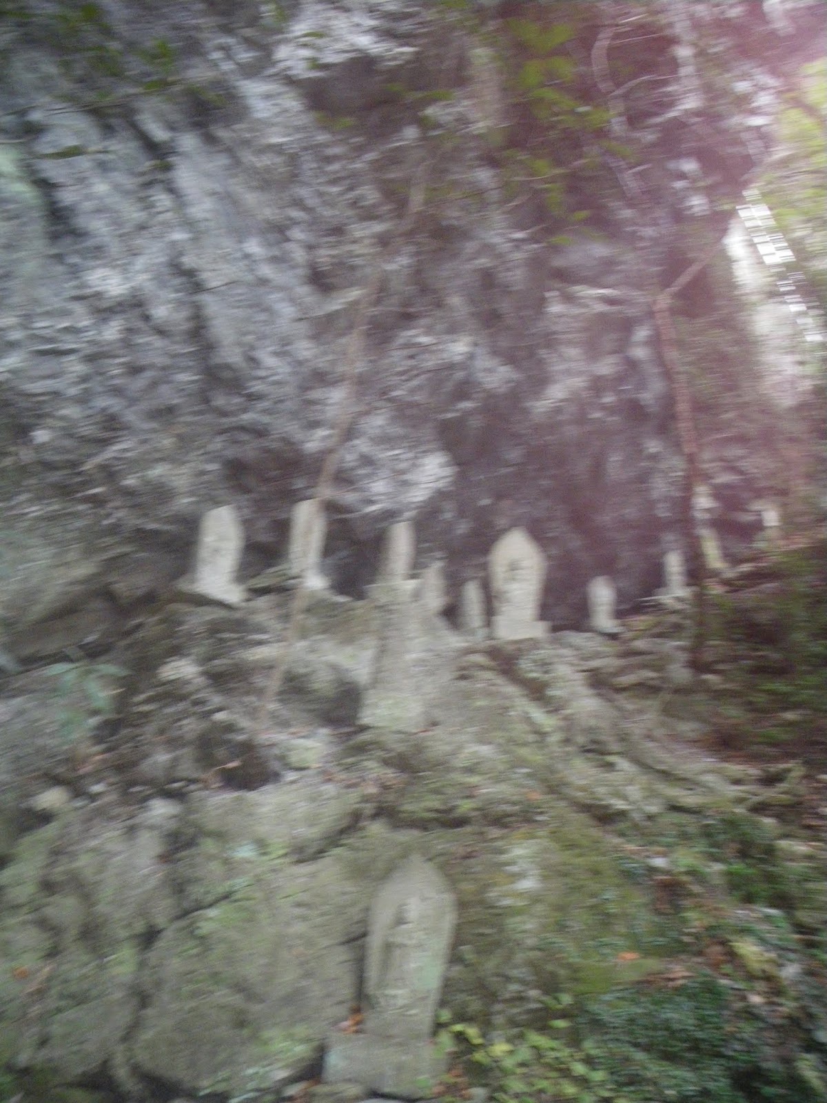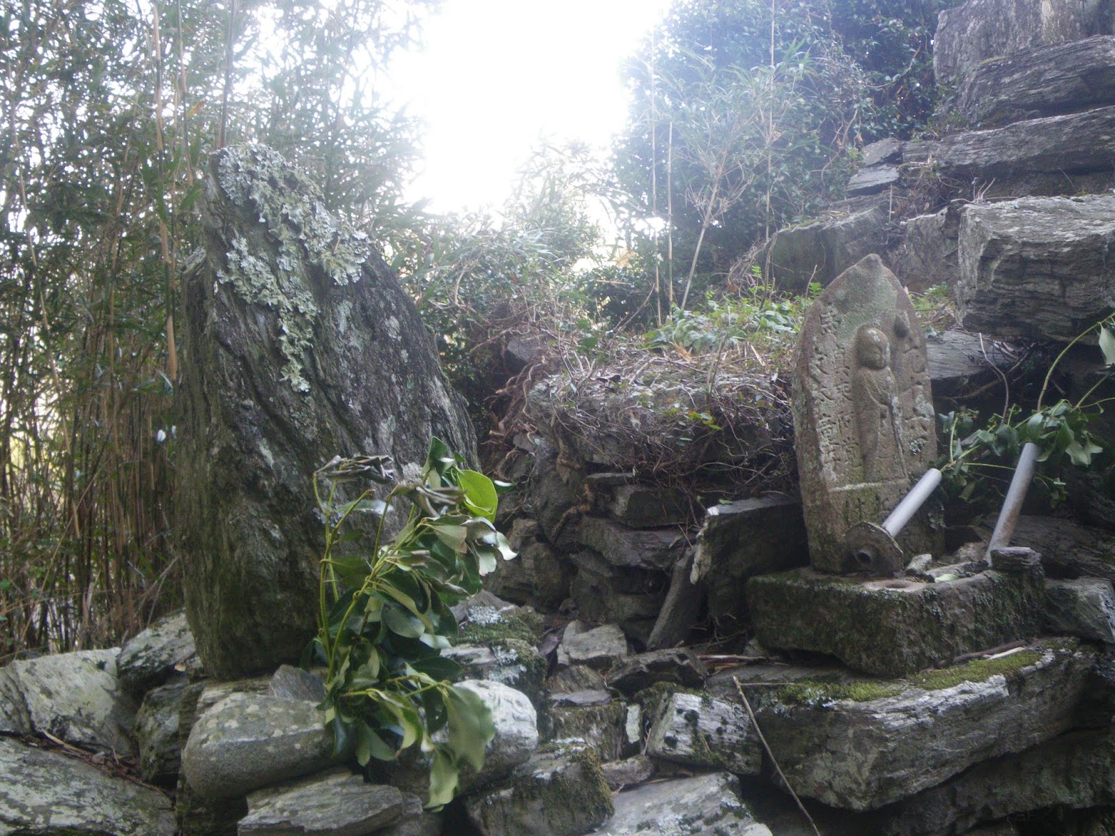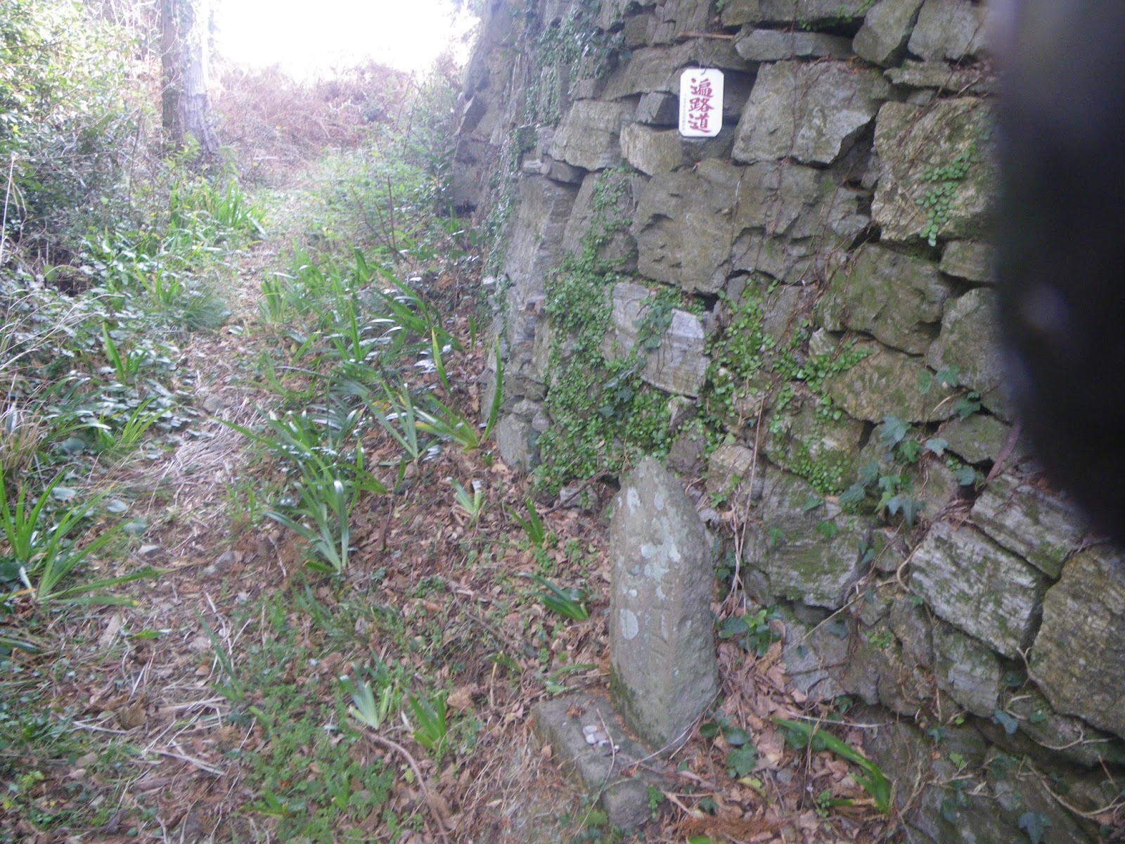 梯子の右手、岩場下にも石仏が並ぶ。ここも注意が必要。石仏が並ぶならそれが遍路道かと右に向かい大岩を上るが、その先はなんとなく遍路道っぽくない。
