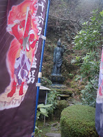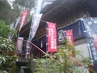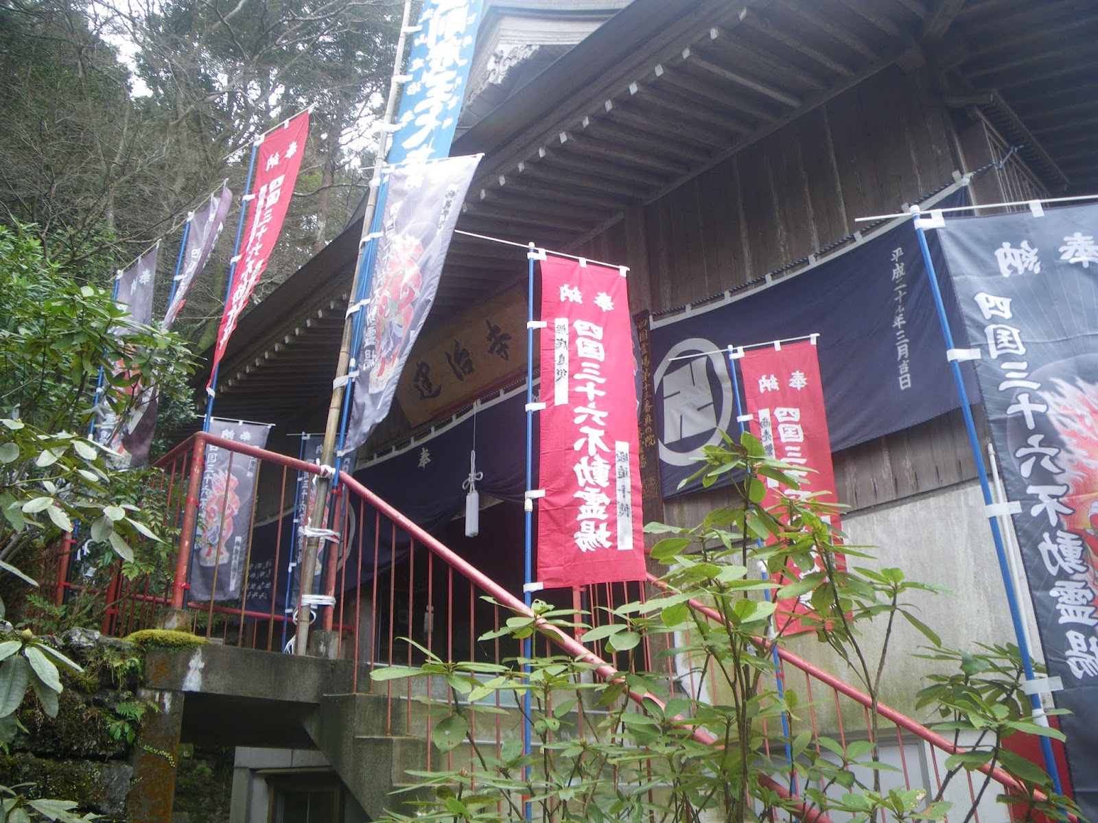 参道を進むと右手に宿坊。左手に厄除大師堂。正面に東面した本堂と続く。本堂には「四国三十六不動霊場」の幡が立ち並ぶ。当寺は第十二番霊場とのこと。
