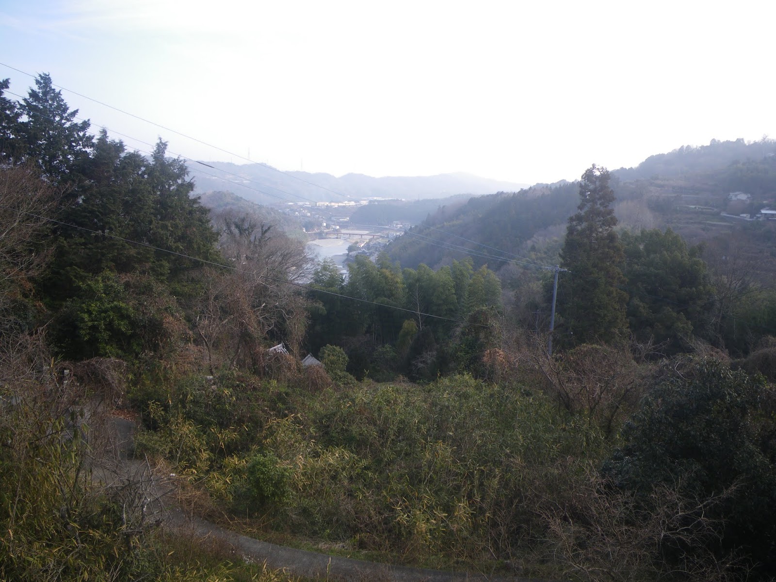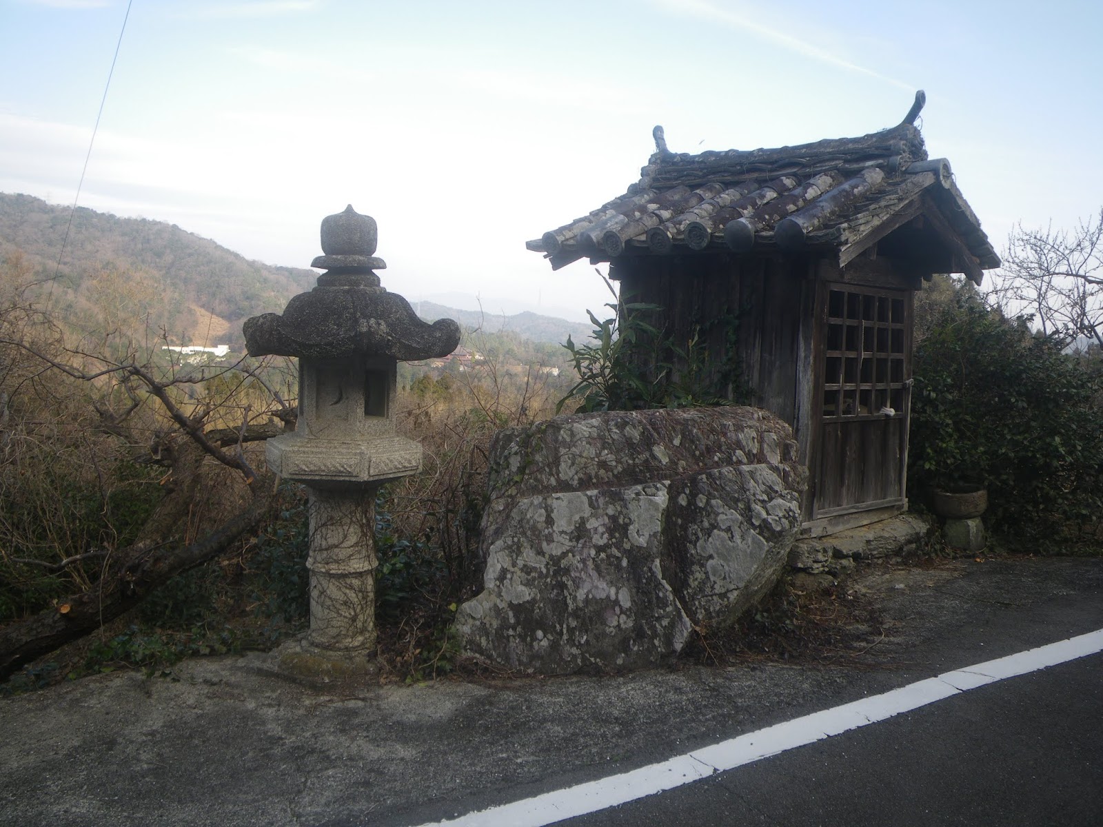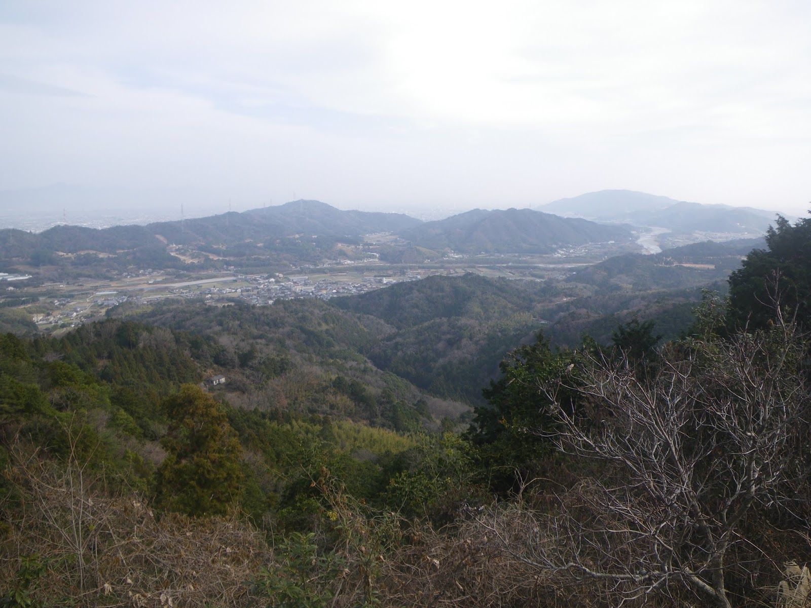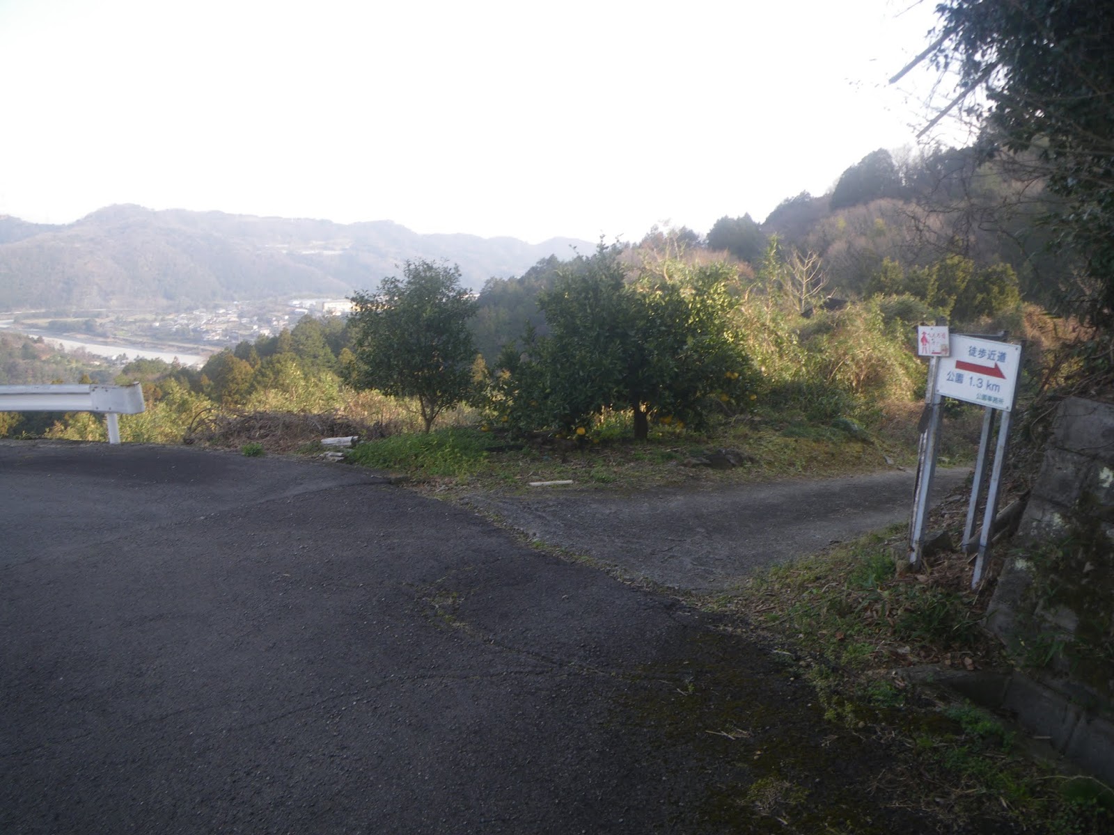 ここから見る眼下に広がる遠景もいいのだが、山麓を通る舗装路に沿って民家が点在するのを見て、気持ちが楽になった。当初人気のない山道が続くのだろうと思っていただけにその安心感は、今はやりのフレーズで言えば、「半端ねえ」といったところ。