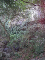 沢筋へと下ると数分で右手に瀧。30m弱といったところだろうか。水はほとんど落ちていない。地形図を見ても、滝の上流部の区間も短く、大雨の後以外に水は流れようもない、滝の傍のお堂には不動明王と共に上述、貞阿上人も祀られている、と。