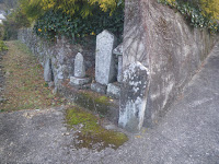 これらの標石の右にも標石がある。手印だけがうっすら見える。