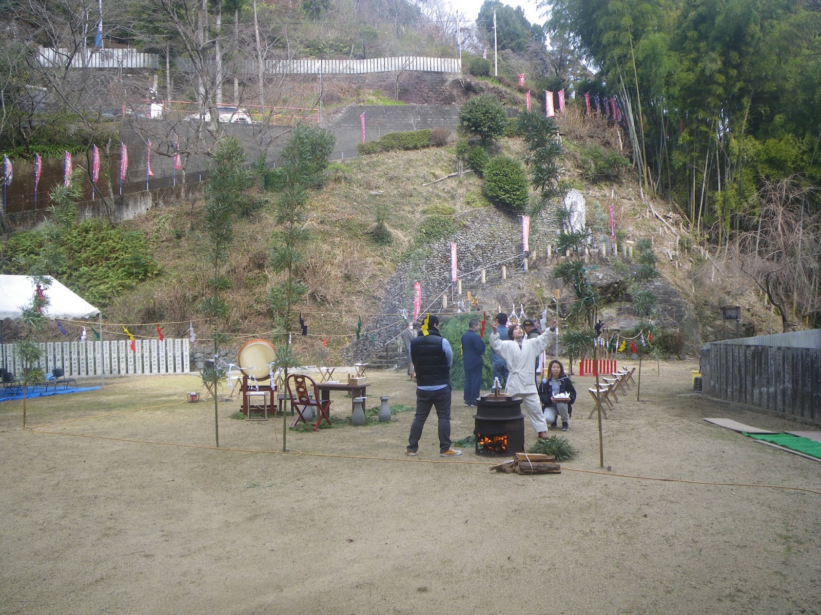 広場(道場)では修験儀式といった準備が行われていた。柴燈護摩の広場とあるので、柴燈護摩の準備なのだろうか。