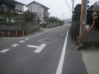 北に進むと直ぐ国道192号に出る。国道を渡るとポールに「四国のみち」と書かれた小さな鉄板が架かる。が、どちらの方向に進めばいいのか指示はない。ここで右に折れ少し東に歩き、大きな交差点を左に折れて県道29号を北に向かうと徳島線府中駅へのY字分岐点。