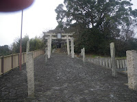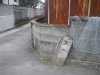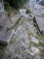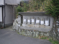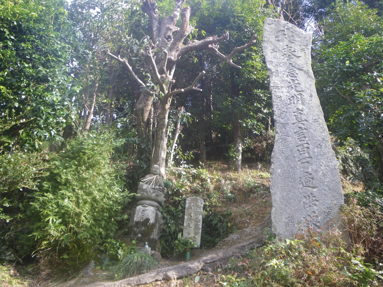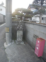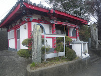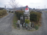 その先、小さな社の手前の角にも「四国のみち」の石標。ここから先で手がかりを失い、仕方なく国道筋へと引き換えし、上述道筋を辿ったわけだが、もう少し根気よく探せば別の遍路道がみつかったかもしれない。