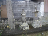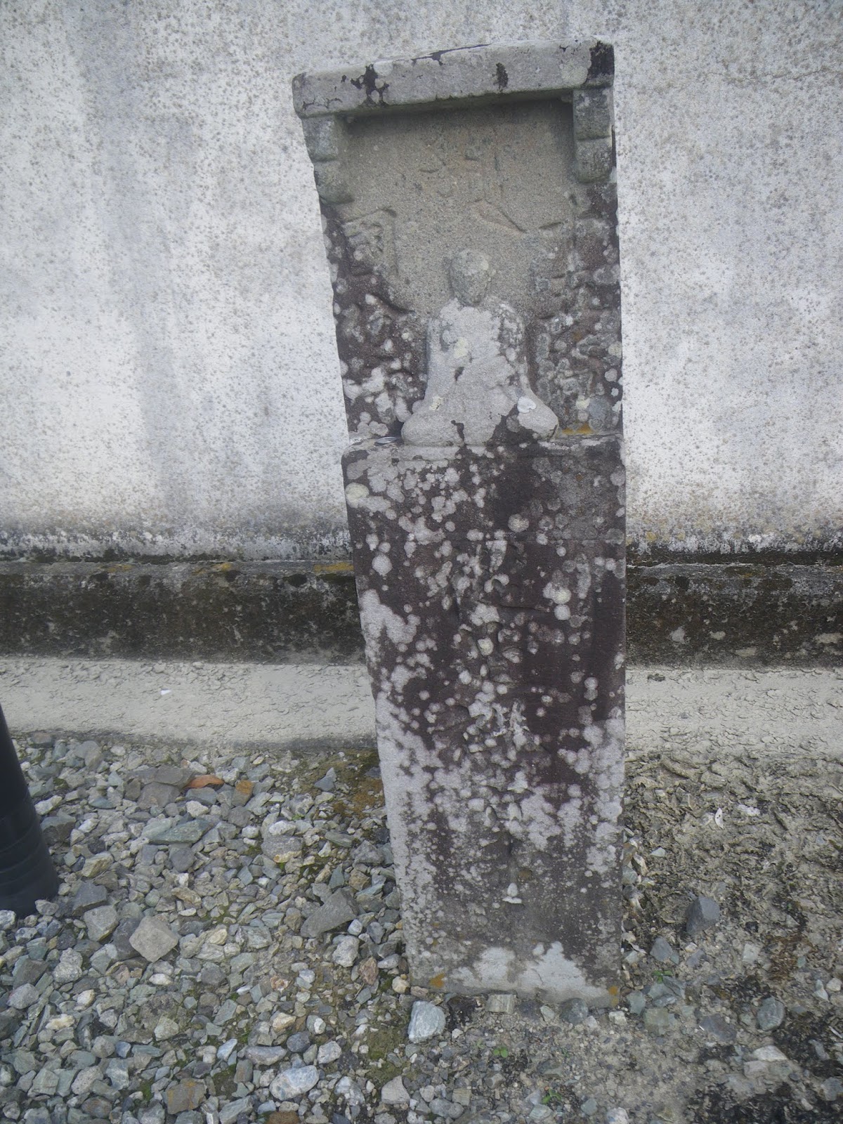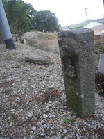 直ぐ先、道の左に2基の石造物。1基は青石板碑のようだ。横の石造物は摩耗が激しくよくわからない。