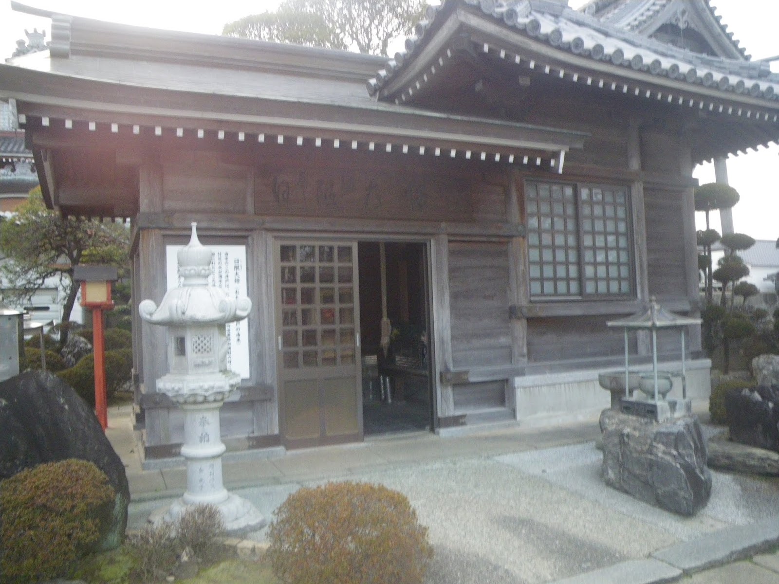 鎮守堂右手に大師堂。結構新しい。平成8年(1996年)に火災で全焼し、平成26年(2014年)に再建された、と。その間烏枢沙摩明王堂が仮大師堂となっていた、と言う。