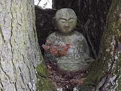 生木地蔵堂には、ヒノキに刻まれた地蔵が祀られる。かつて刻まれていたヒノキが枯れたため幹を切り取りお堂に祀ったとのことである。境内を一夜の宿とした越中の遍路に修行大師の夢のお告げがあり、お告げに従いヒノキに地蔵を刻んだとの縁起が残る。