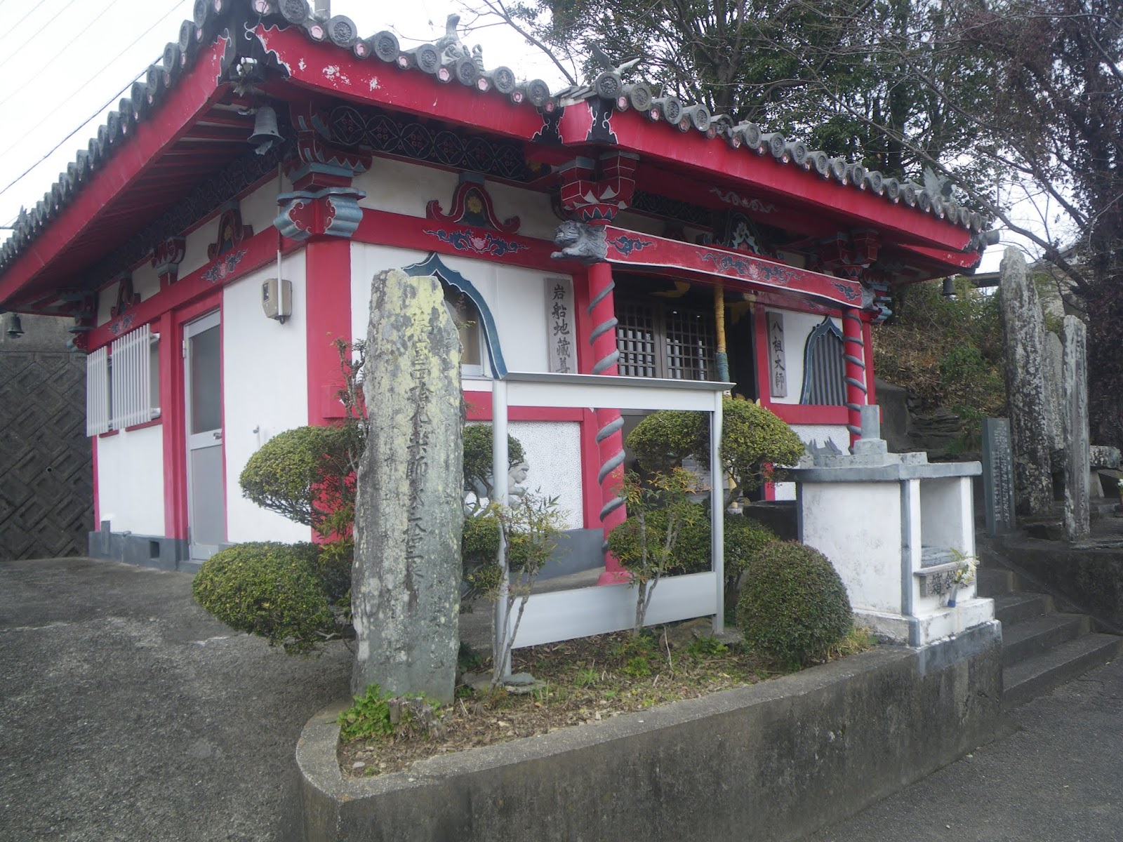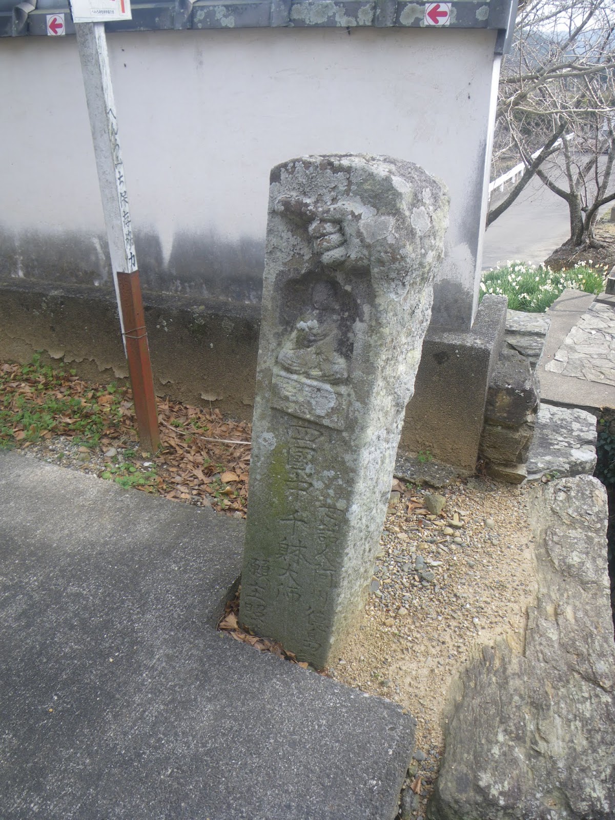 本堂から東に下る参道があり、その下り口に照蓮の四国千躰大師標石。この標石には通常よく見る「四国中千躰大師」と刻まれるが、手印がちょっと異なっている。手印が線彫り状になっている。これもちょっと珍しい。後世手直しされたもの、とも言われる。