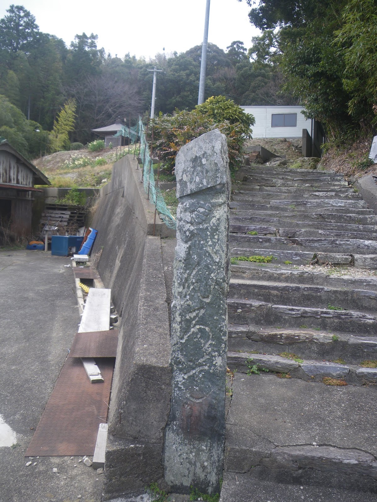 道なりに進むと墓地の前に石碑。「四国十遍供養二世安楽」と刻まれる。その先の道脇に「瑜伽(ゆが)大権現」の石碑。「常楽寺世話人会」とある。常楽寺に何らかの関係があるものだろうか?台座に「三界萬霊」と刻まれた地蔵座像から少し奥まったところに小祠があるが、情報はなし。横に日枝神社がある。阿波一宮でもあった神山町上一宮神社・神宮寺にも瑜伽(ゆが)大権現が祀られる、と。神仏習合時代の名残り?