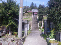 それはそれでいいのだが、白小石は「城恋し」から、と東洋町の記事にあった。 「天正3年7月、長宗我部兵の野根城館奇襲により野根一族は阿波国へ落ちのびていった。その途中、野根国長は燃上する城を振り返って「ああ、城恋し」と嘆いたという。それで白小石(城恋し>白小石)という地名になった」と。ブロック塀に囲まれた六部堂の左の広場奥に誠に小さな祠が祀られる。里神社というこの小祠は「野根氏や安芸氏をはじめ、安芸郡下惟宗一族の始祖とされる曽我赤兄を祭っている(東洋町の記事)」と。