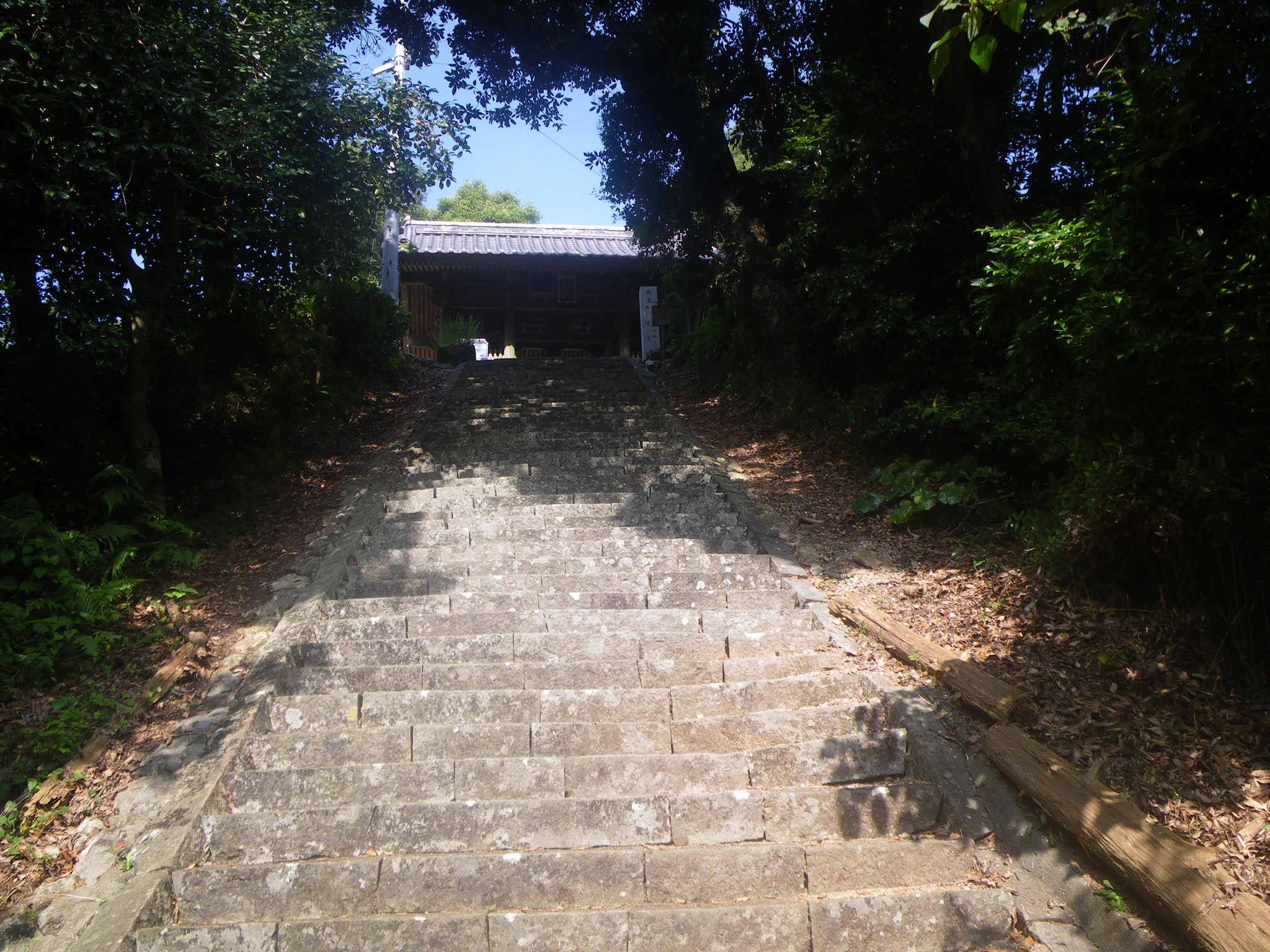丘陵の間を抜けると道の左手に第三十四番札所 種間寺の寺標石。左に折れて境内に進む。