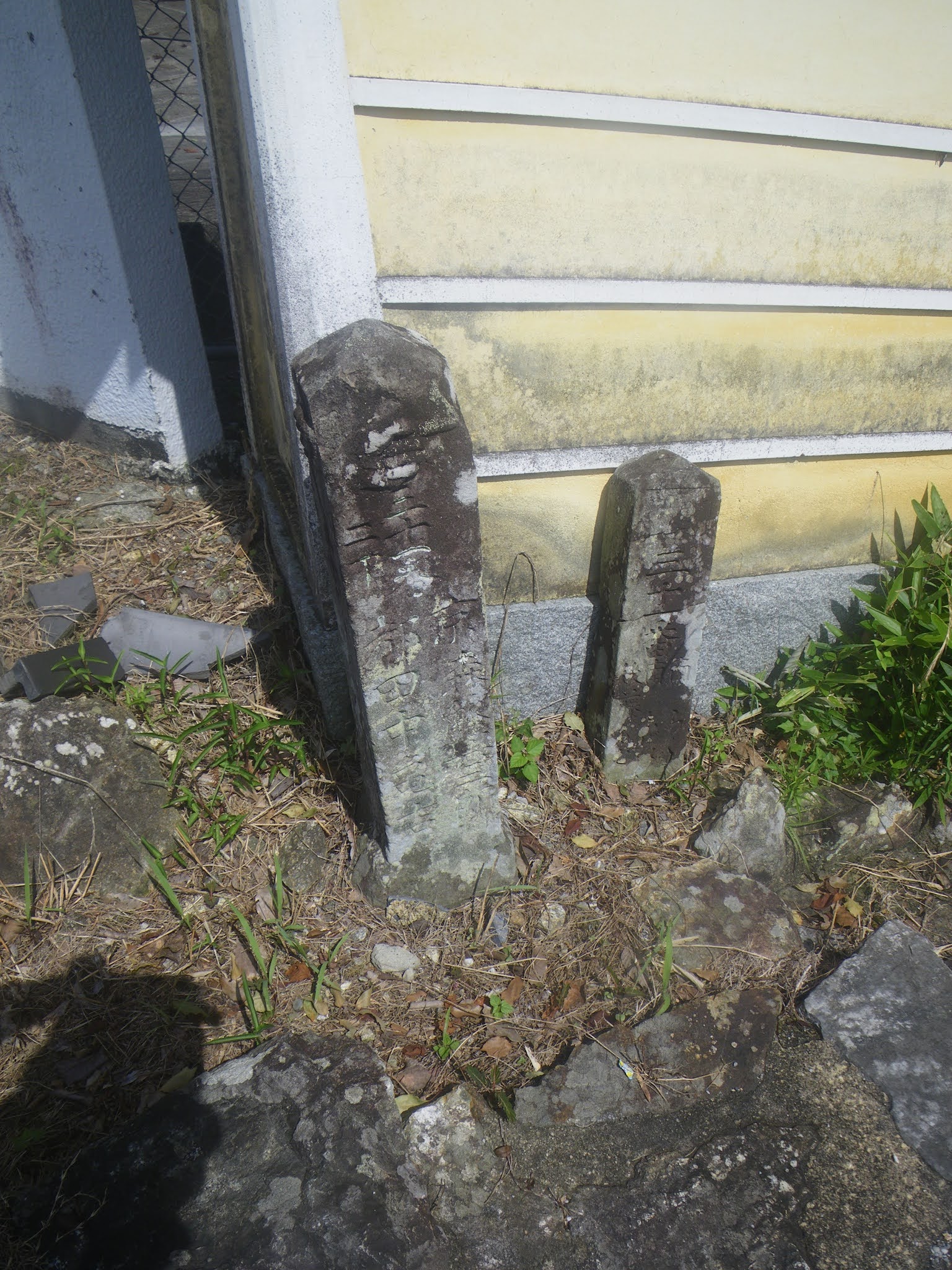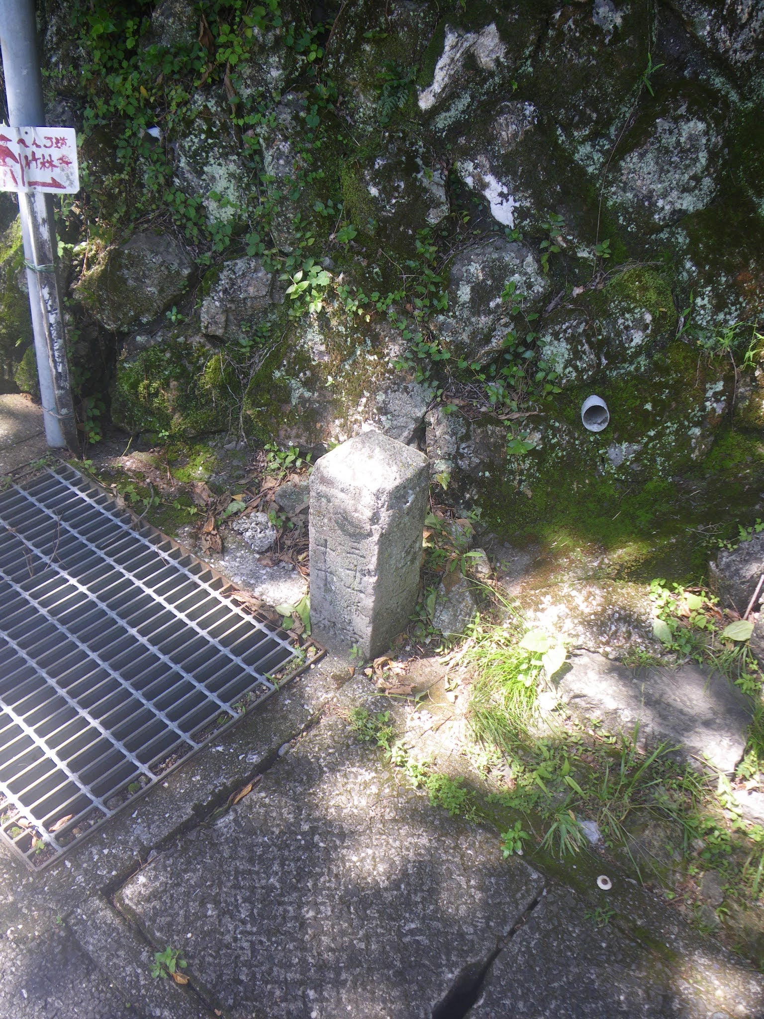 道を西進、砂地といった如何にも海岸堆積岩よりなる地形を表す地区を越え大平山(標142.8m)の山裾、県立高知高等技術学校の校庭西端の道の左手に標石らしき石柱。記録ではこの辺りに「へんろ道 三十二番へ十二丁 三十三番へ一里十六丁」と刻まれた遍路標石があると言う。その標石かもしれない。