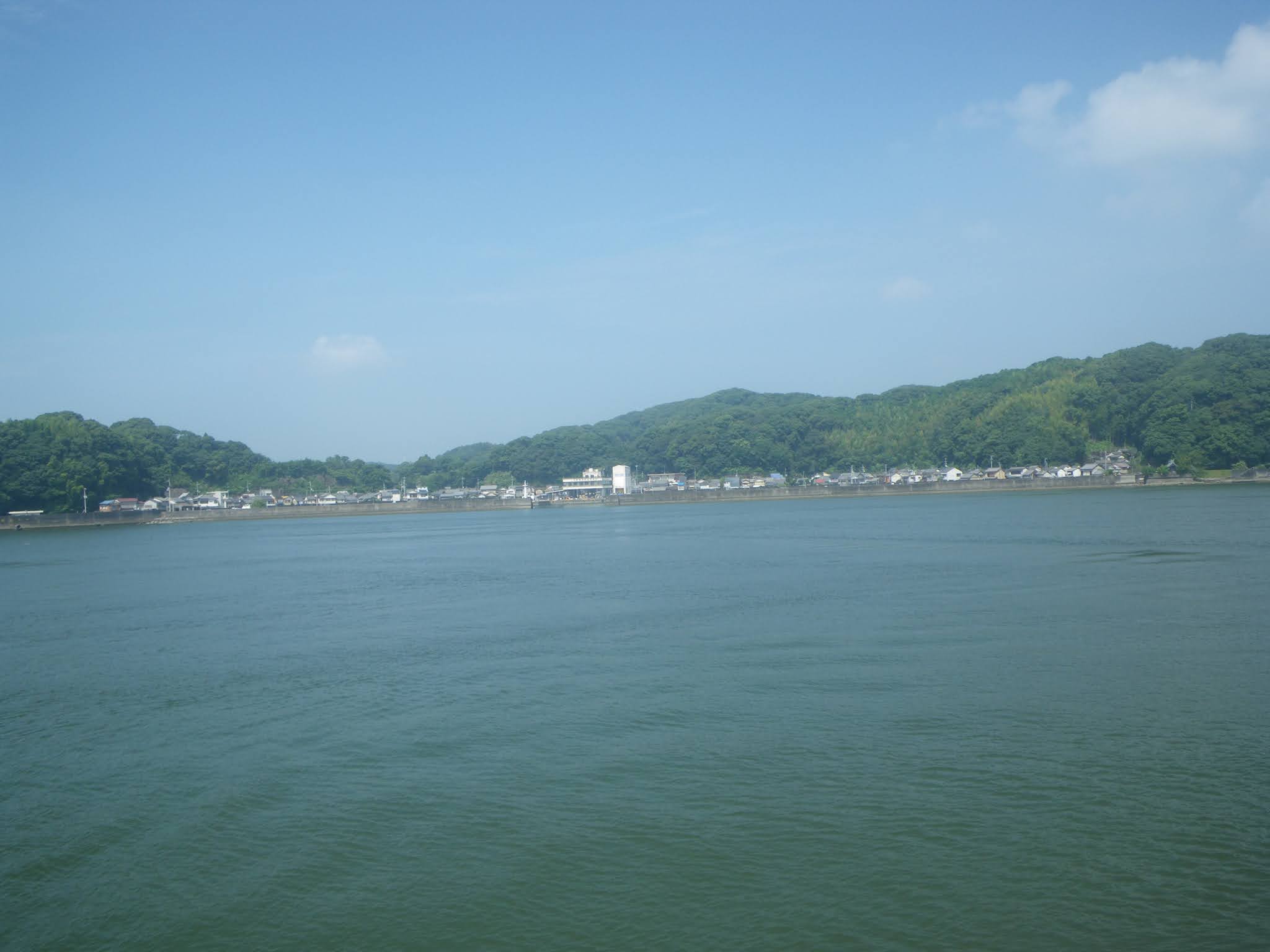 岸壁より対岸を眺める。6キロ弱と誠に狭い。種崎は、「戸の崎、ト(門・戸)は土地が両方迫り狭くなった水運 路?刀禰(船長)の居る崎、刀禰崎」と『土佐地名往来』とあった。