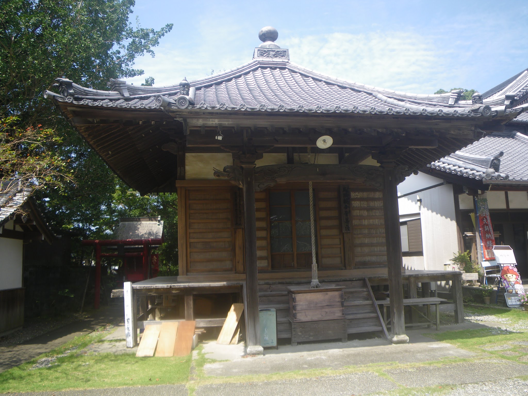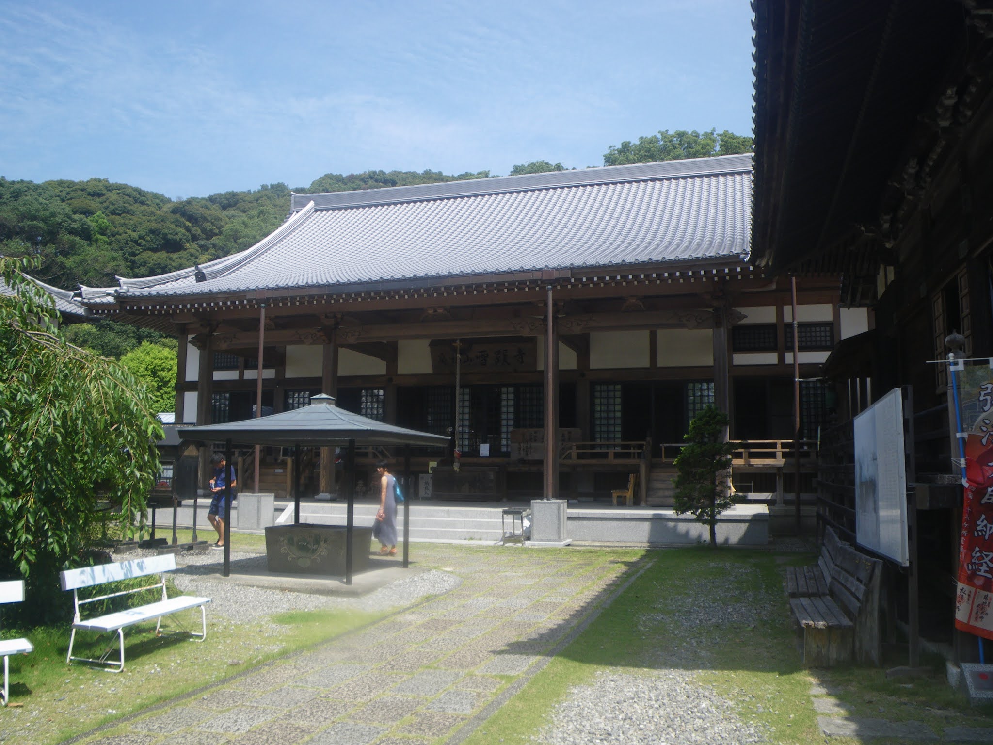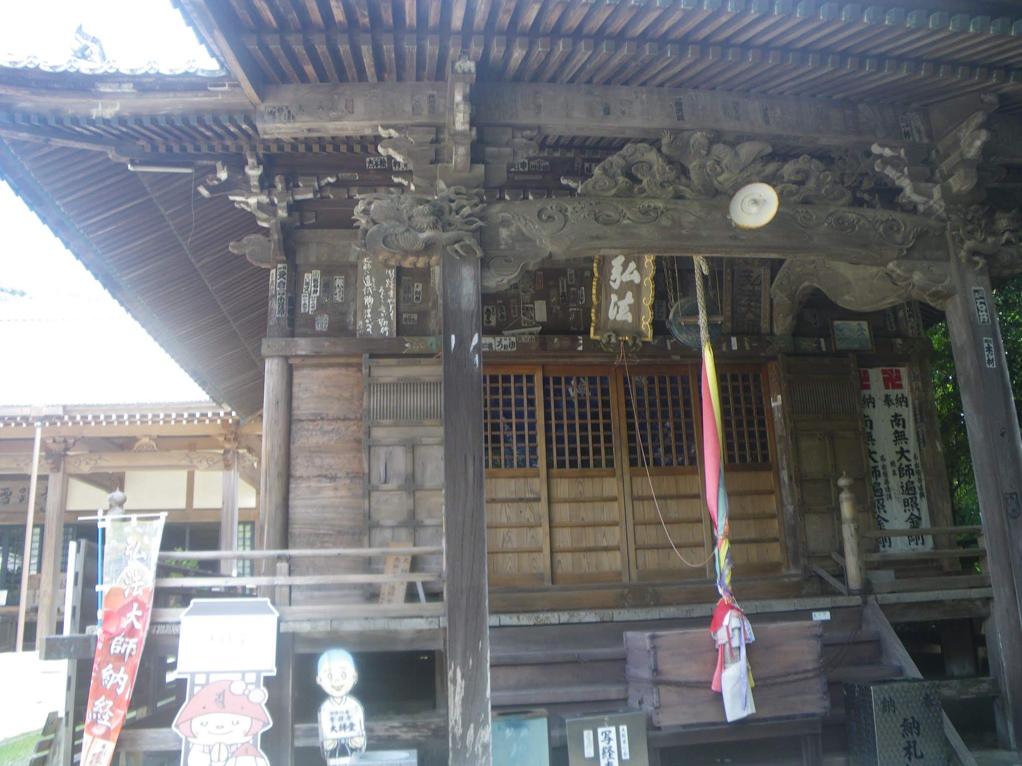 本堂も大師堂も香台の置かれたところにも覆屋が建っている。あまり見ない様式のように思う。本堂は昭和45年(1970)の台風で被害を受け、修築に際し時の住職がコンクリートでの再建案を避け木造を決断。美しい屋根のフォルムを楽しむことができるのもそのおかげである。