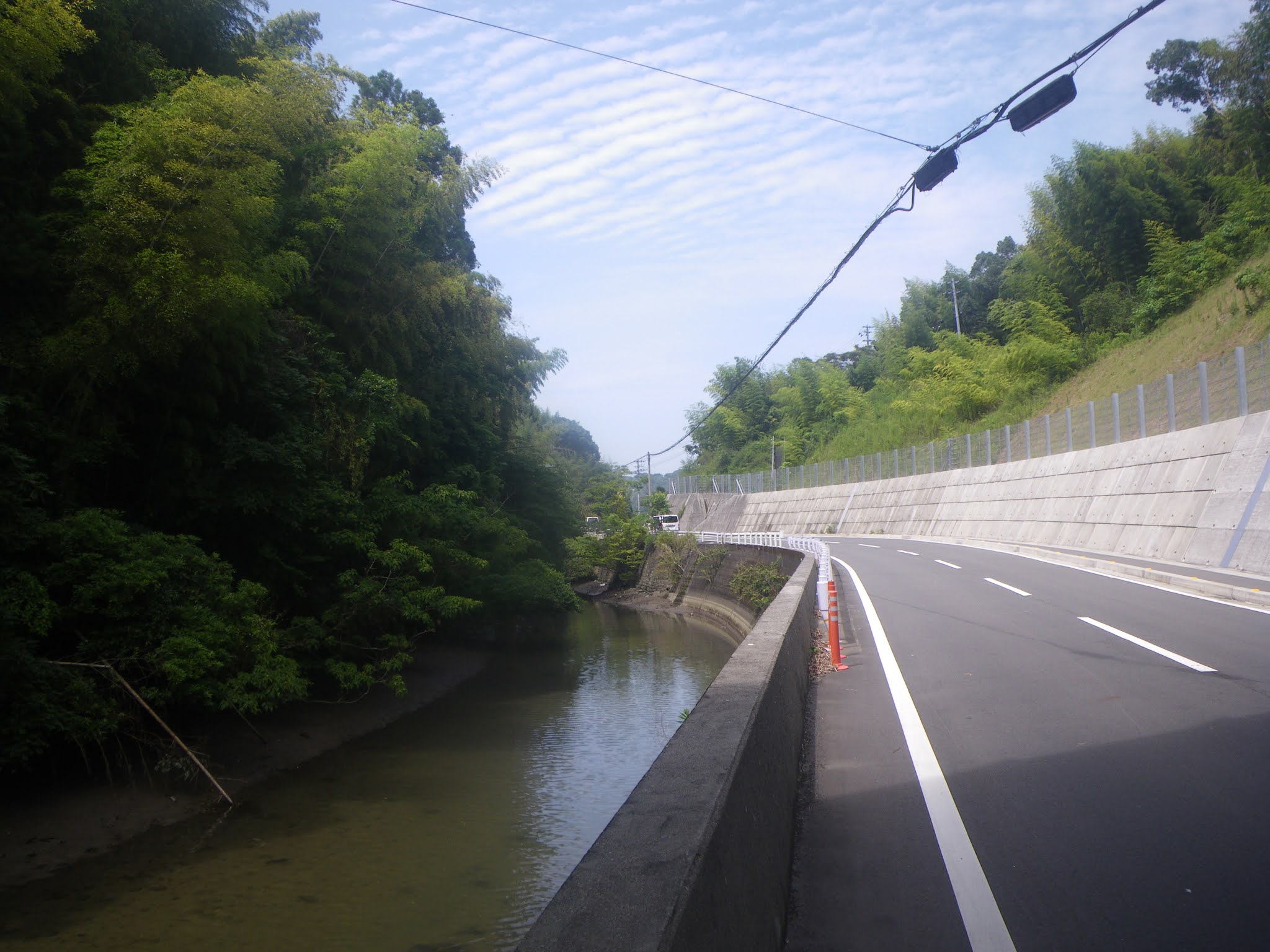 日出野地区過ぎると前面を丘陵地が防ぎ、県道・水路はその丘陵地を堀割った切通しを抜ける。ここが前述唐音の切抜(切通し)。県道が2車線に整備され切り抜きの風情はあまりない。