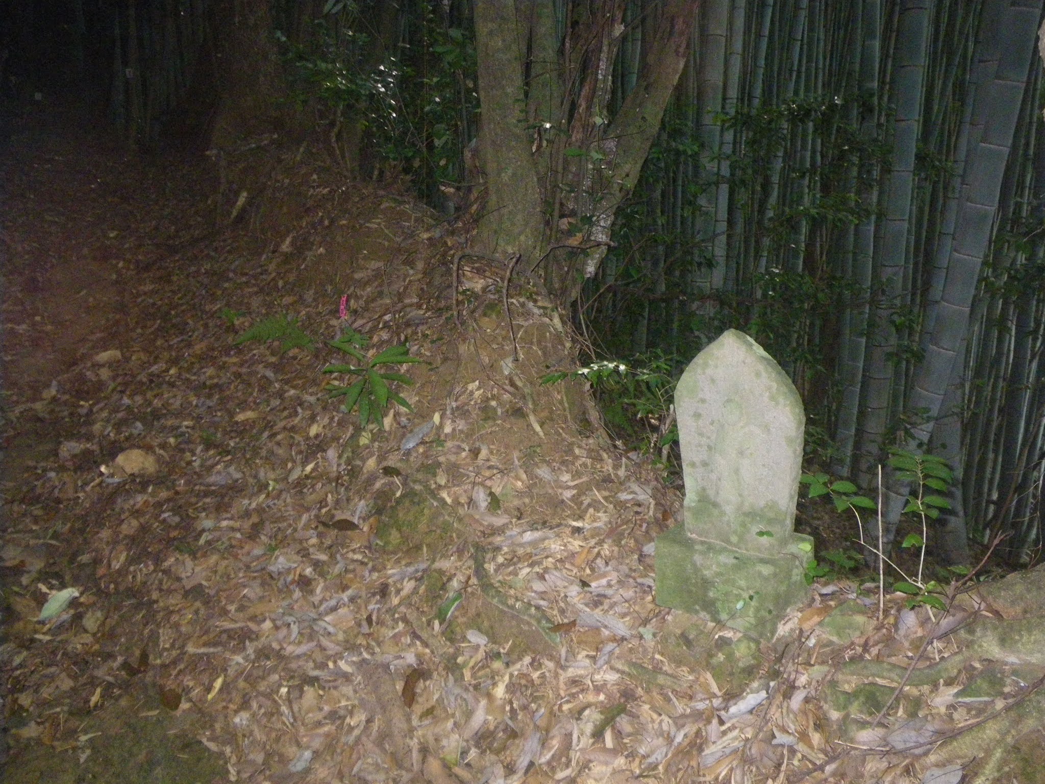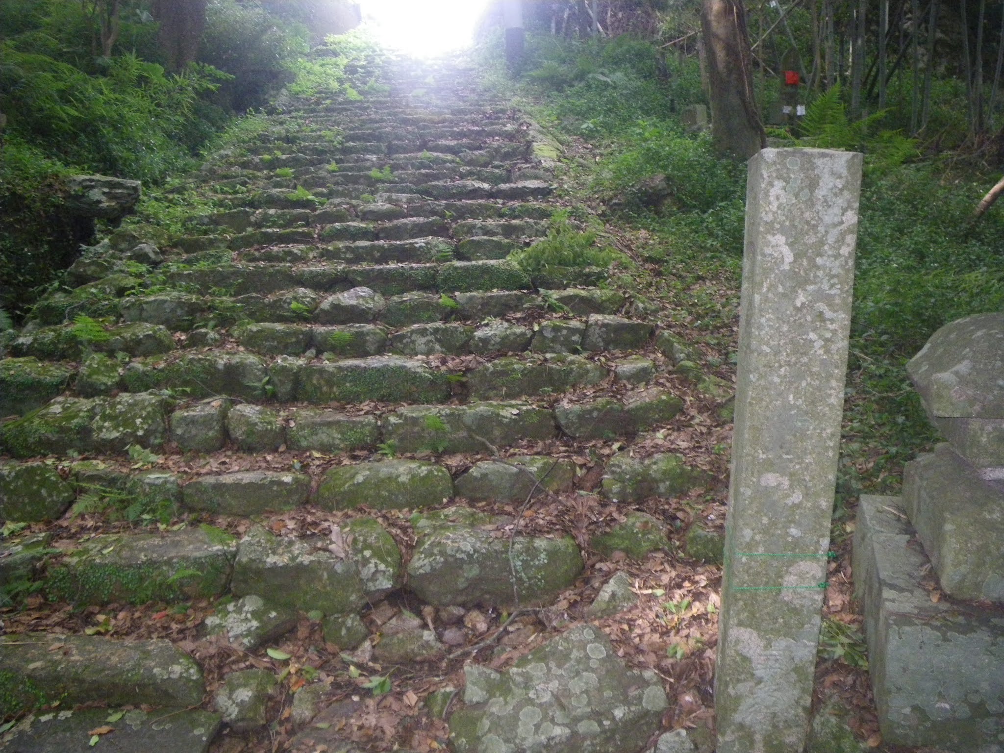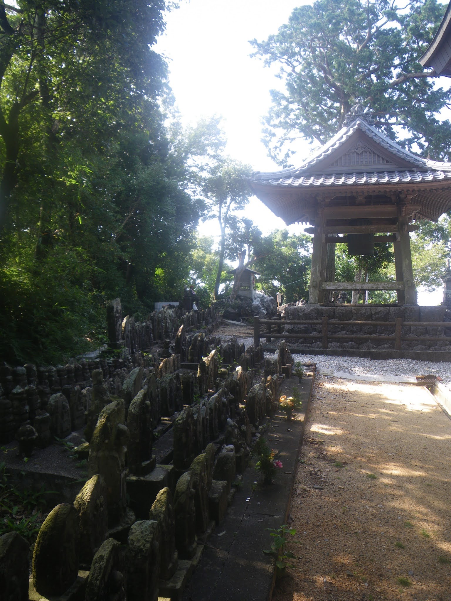 ジグザグの遍路道を上る。比高差は60mであり、それほどキツイ坂ではない。道の途中には三丁、二丁の舟形丁石、1基の石仏が立っていた。