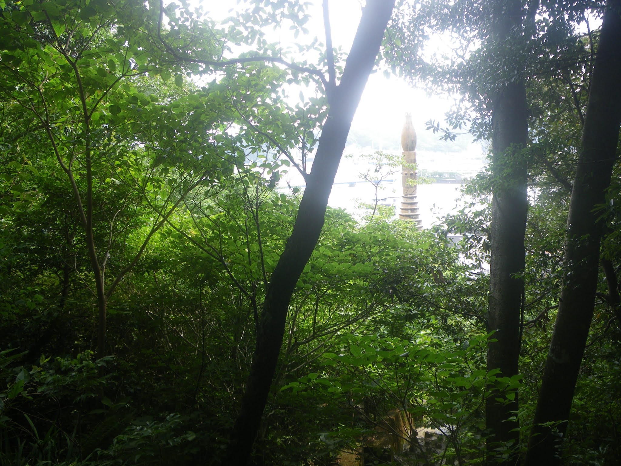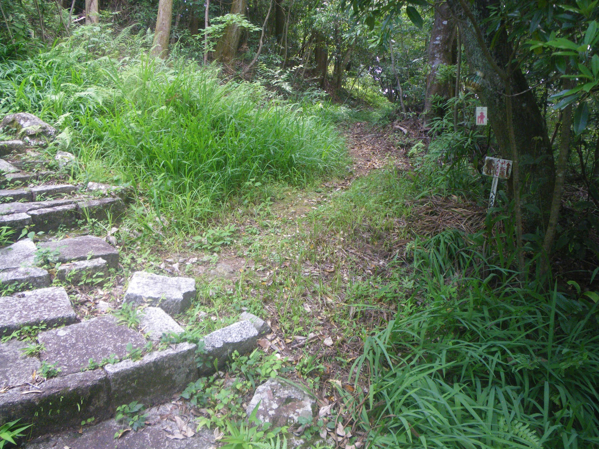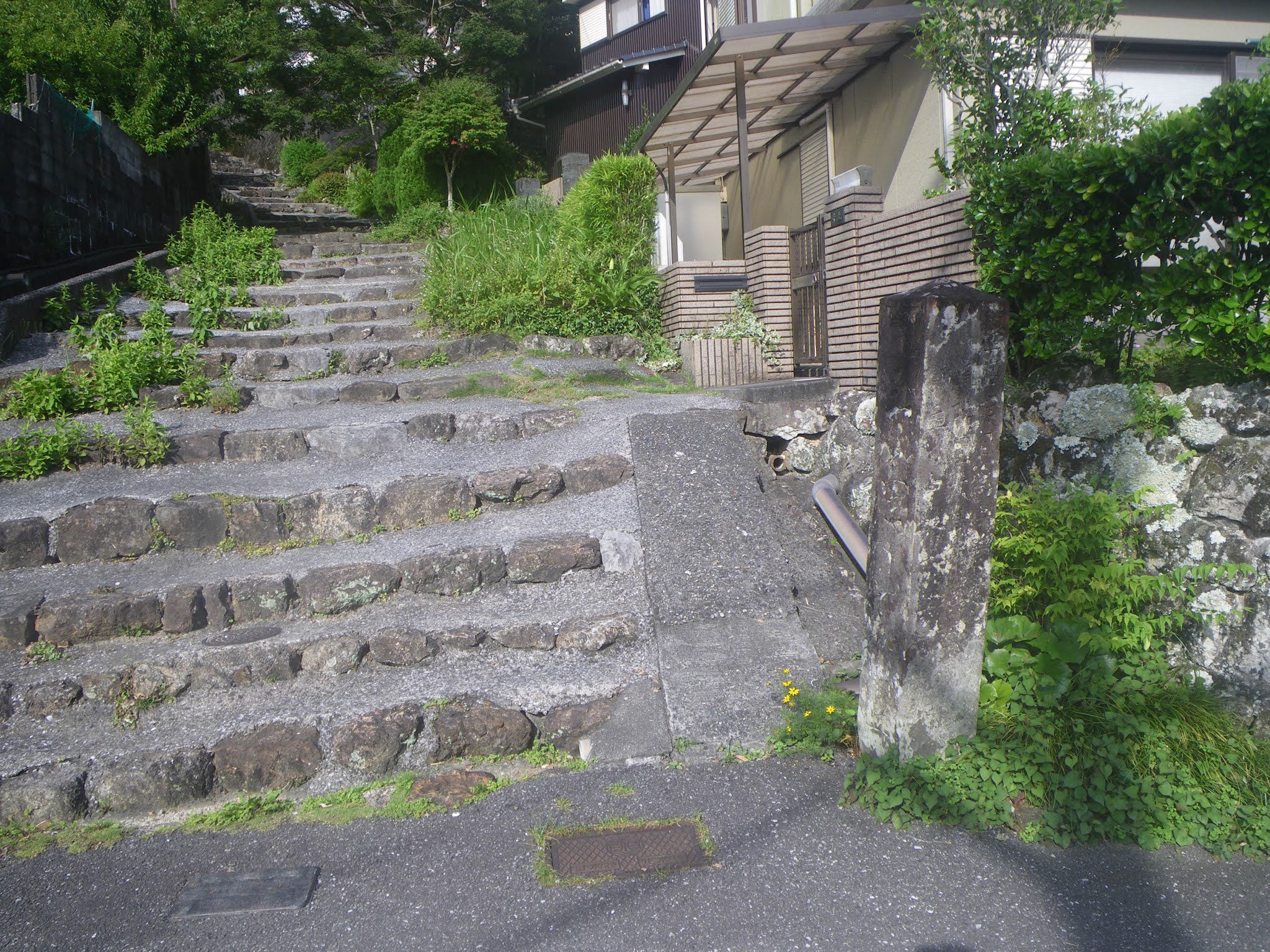 ジグザグの遍路道を上る。比高差は60mであり、それほどキツイ坂ではない。道の途中には三丁、二丁の舟形丁石、1基の石仏が立っていた。