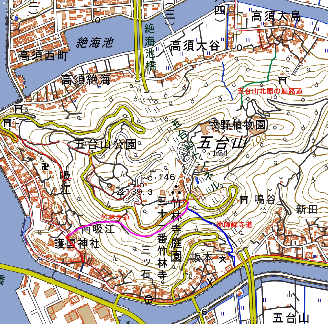 竹林寺から南の大畑山地を越え32番禅師峰寺までおおよそ7キロ。道は山地に深く切り込んだ侵食谷を辿るため、緩やかな坂道を上り標高20mほどの鞍部を越えるだけであり険しい山越えではない。