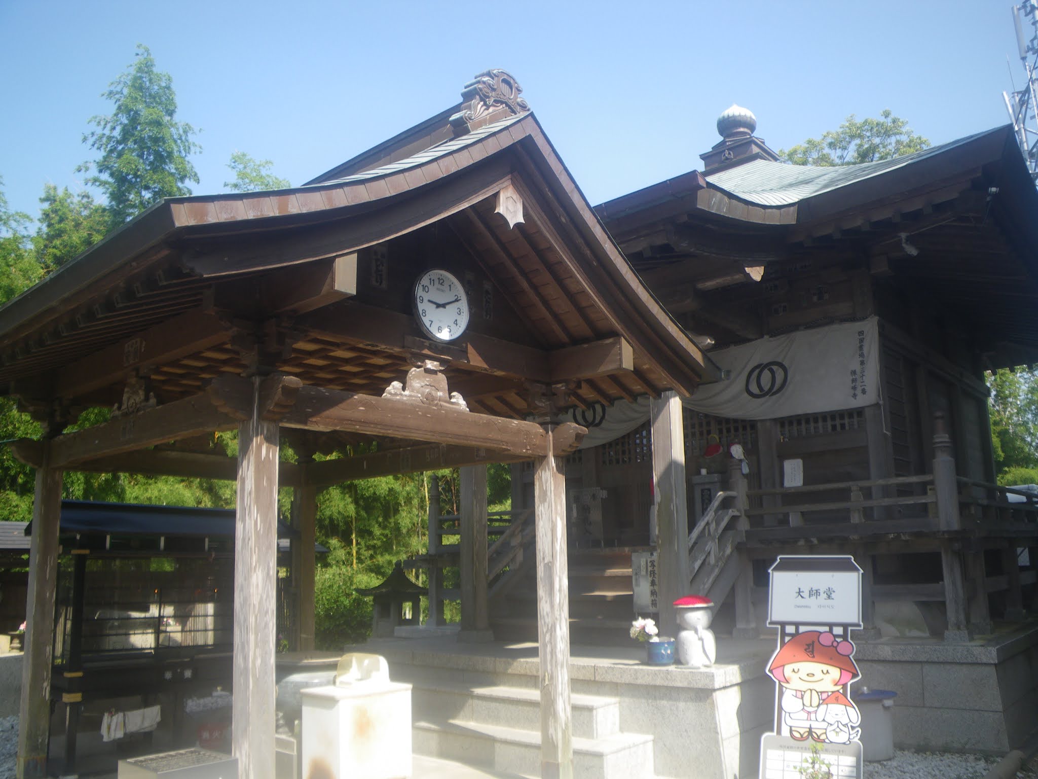 右手に奇岩を見遣りながら三十一段の石段を上り、右に曲がると正面に本堂、右手に鐘楼、左手に大師堂。大師堂前面には地蔵堂が建つ。