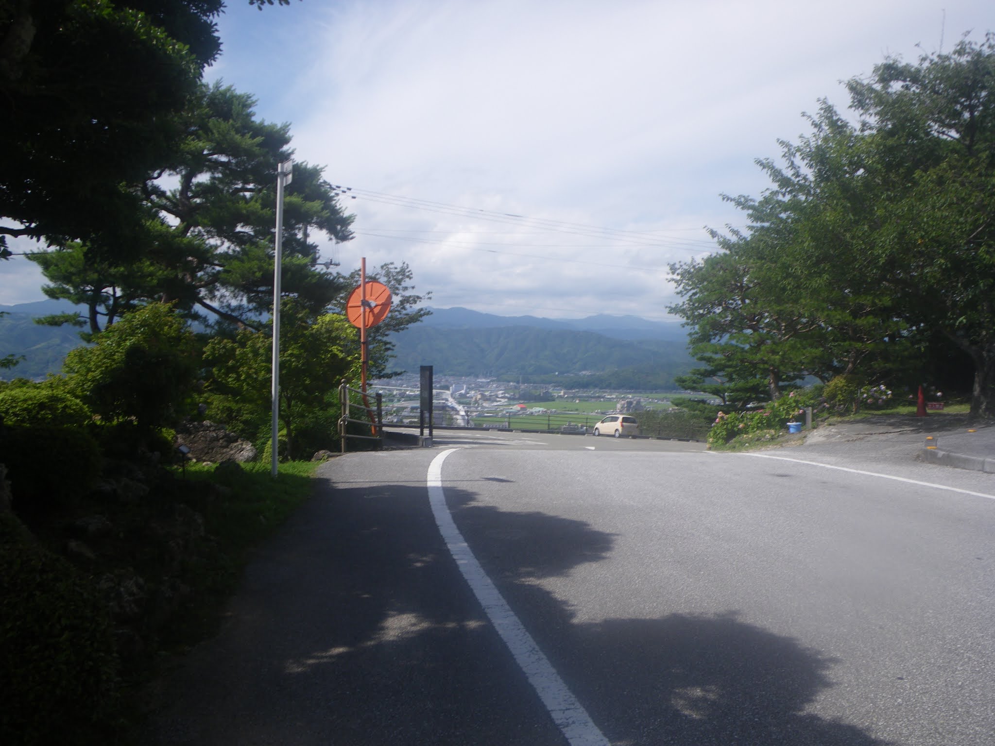 県道に戻り南下。緩やかな坂を大畑山地の鞍部に向かって上り、右手に刈松神社の社が建つ辺りより県道を離れ右手に逸れる道に乗り換える。