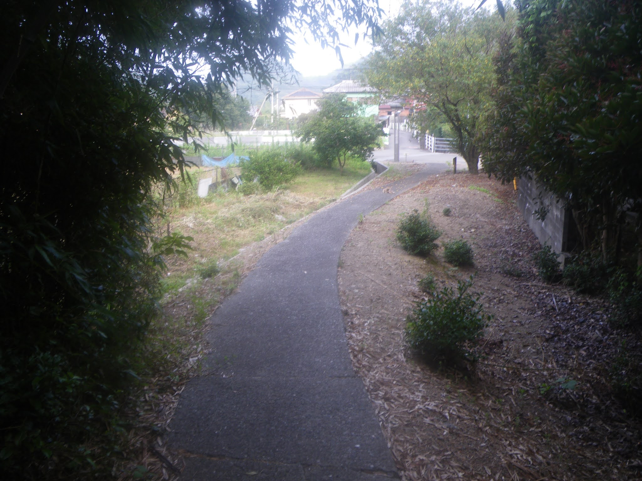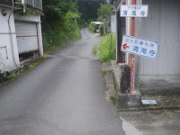宇佐大橋を渡り切ると横波山地が土佐湾に落ちる北端部、道の右手に「旧遍路道」の案内。「旧へんろ道 坂道ですが約30分です 旧道へ450m」とある。ここが竜坂越えのアプローチ地点。案内に従い右に折れ井尻の集落に入る。