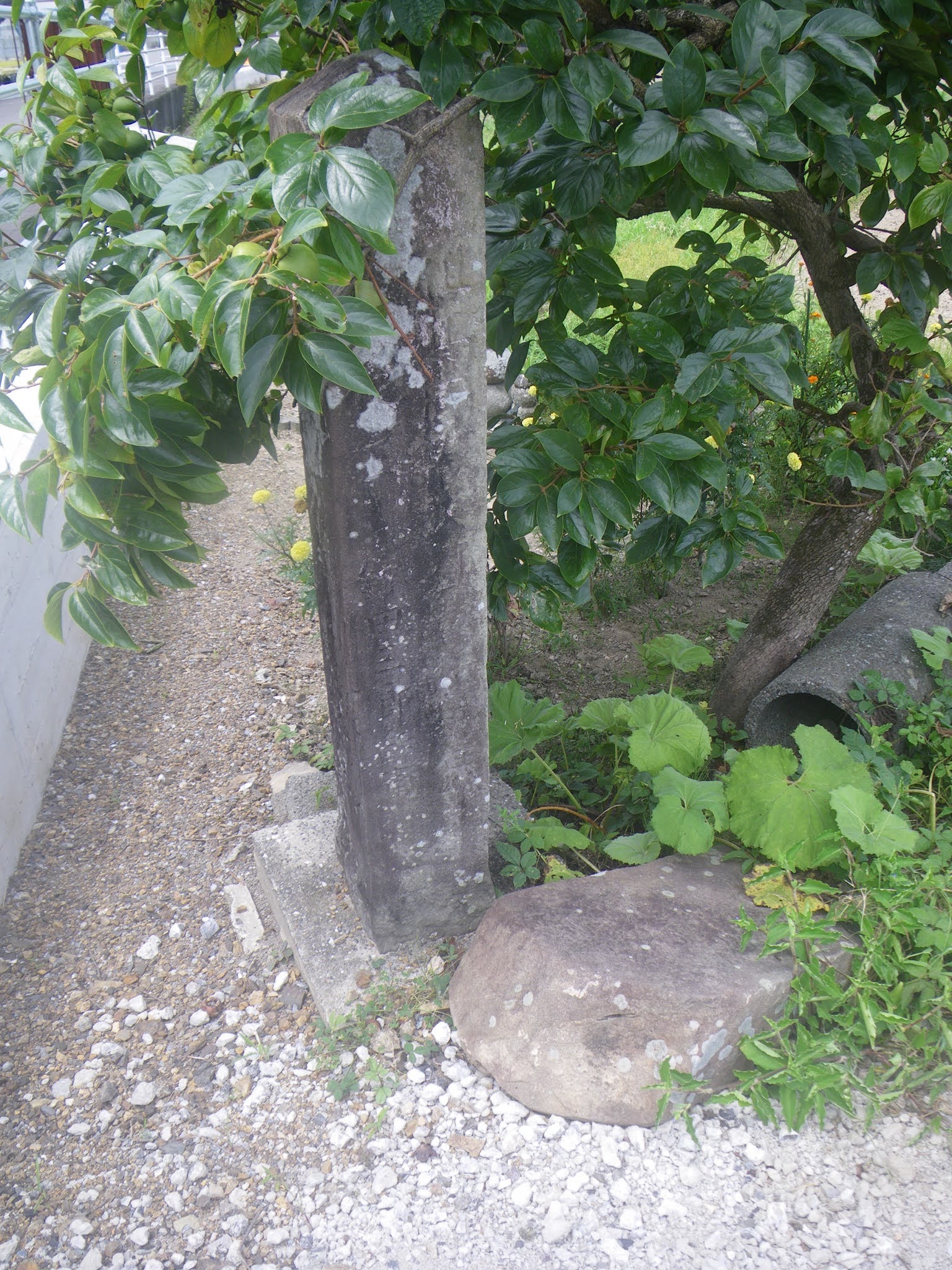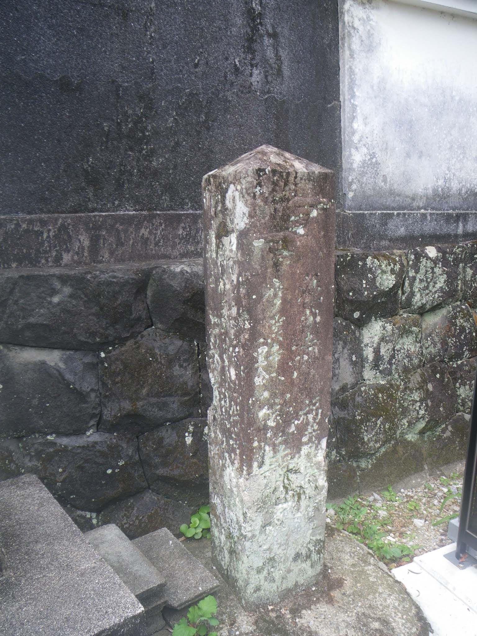 標石?、などと思いながらもチェックすると茂兵衛道標であった。かつての写真では三つに折れた標石が電柱脇に積まれている。よく見ると3段に積み重ねられていた。「*十八」といった文字も読めた。茂兵衛88度目巡礼時のものであったよう。
