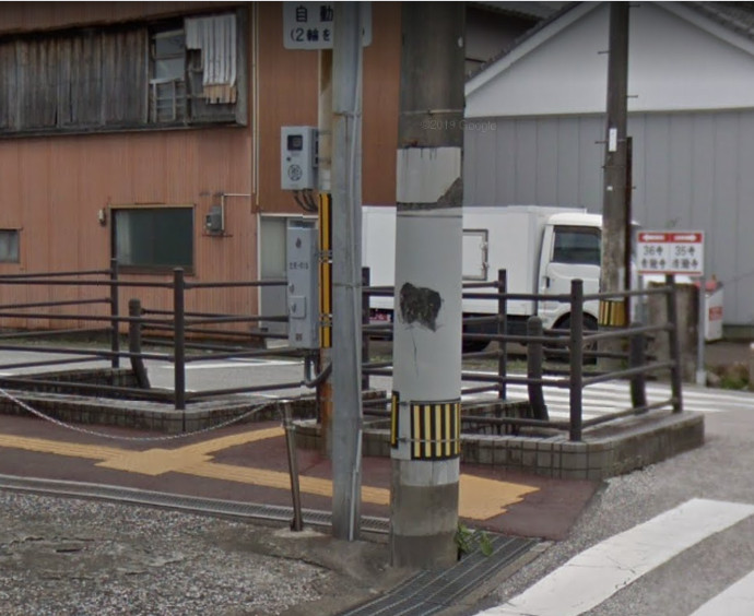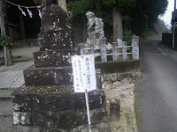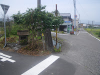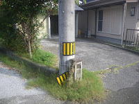 伊神社の角を右折し西進し萩谷川筋に合流、そのまま西進し海にほど近い潮止水門が見える辺りで成り行きで左折し宇佐の町中を進むと四つ辻、南西角のにほとんど壊れた標石らしきものが鉄脇で補強され電柱根元に置かれていた。