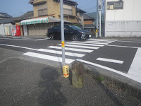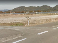 8丁石を越えるとほどなく里の舗装路に下りる。井尻大師堂からおおよそ30分ほとであった。少し進むと四つ辻。道に石柱。神社の幡を立てる石柱かとおもったのだが、青龍寺の寺柱とのことである。竜坂越えが往昔の遍路メーンルートであったエビデンスでもある。