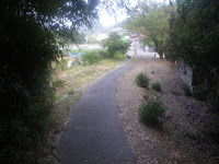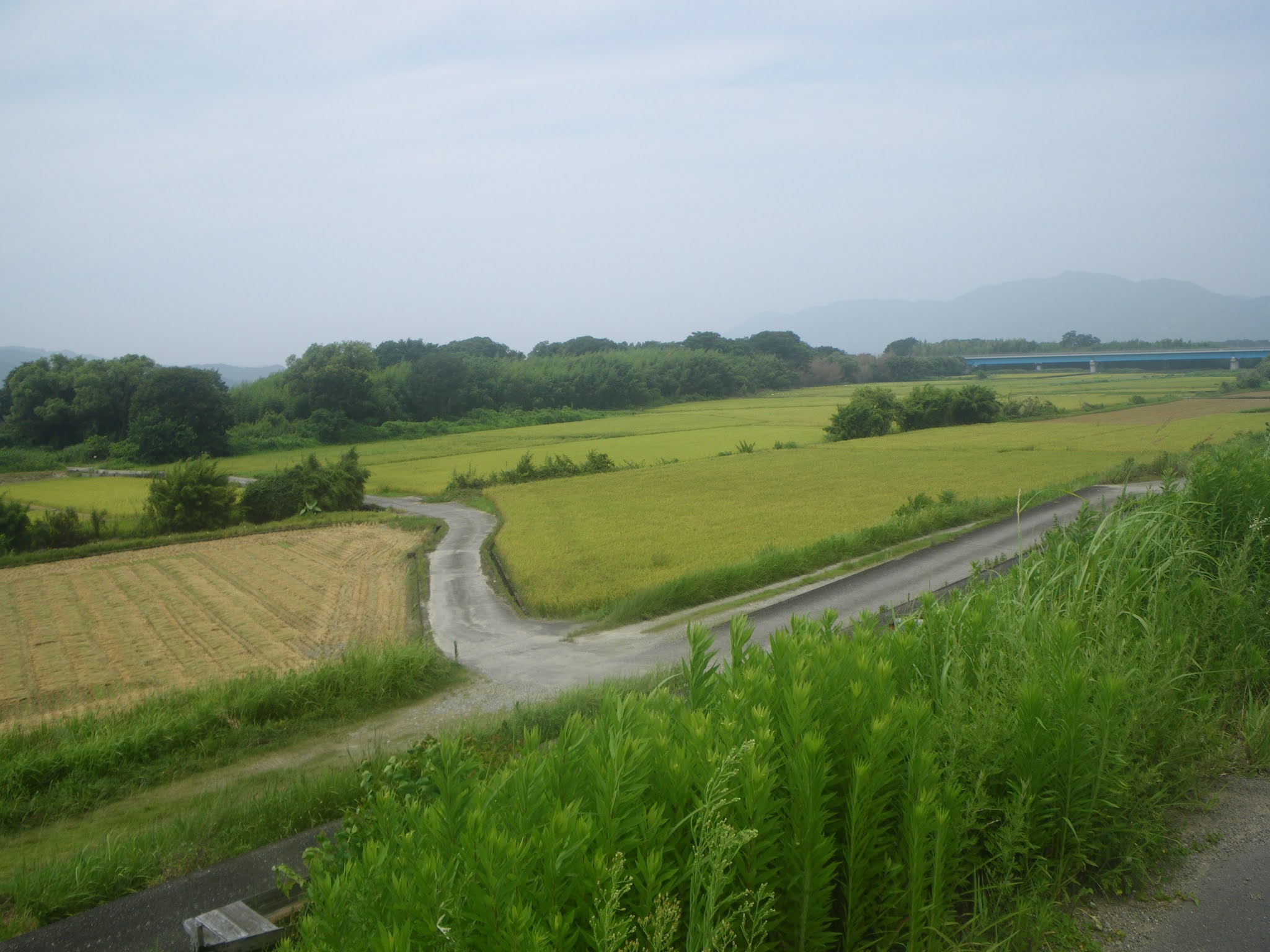 道の左手を流れる用水路に沿って南下。東西に走る県道39号を渡り更に南下,用水路が鋳鉄の「たたら」をその語源とする「高殿」(「土佐地名往来)あたりで、北から下って来た用水路を「水路橋」で渡る辺りで用水路と共に道もその方向を東に変えしばらく進む。