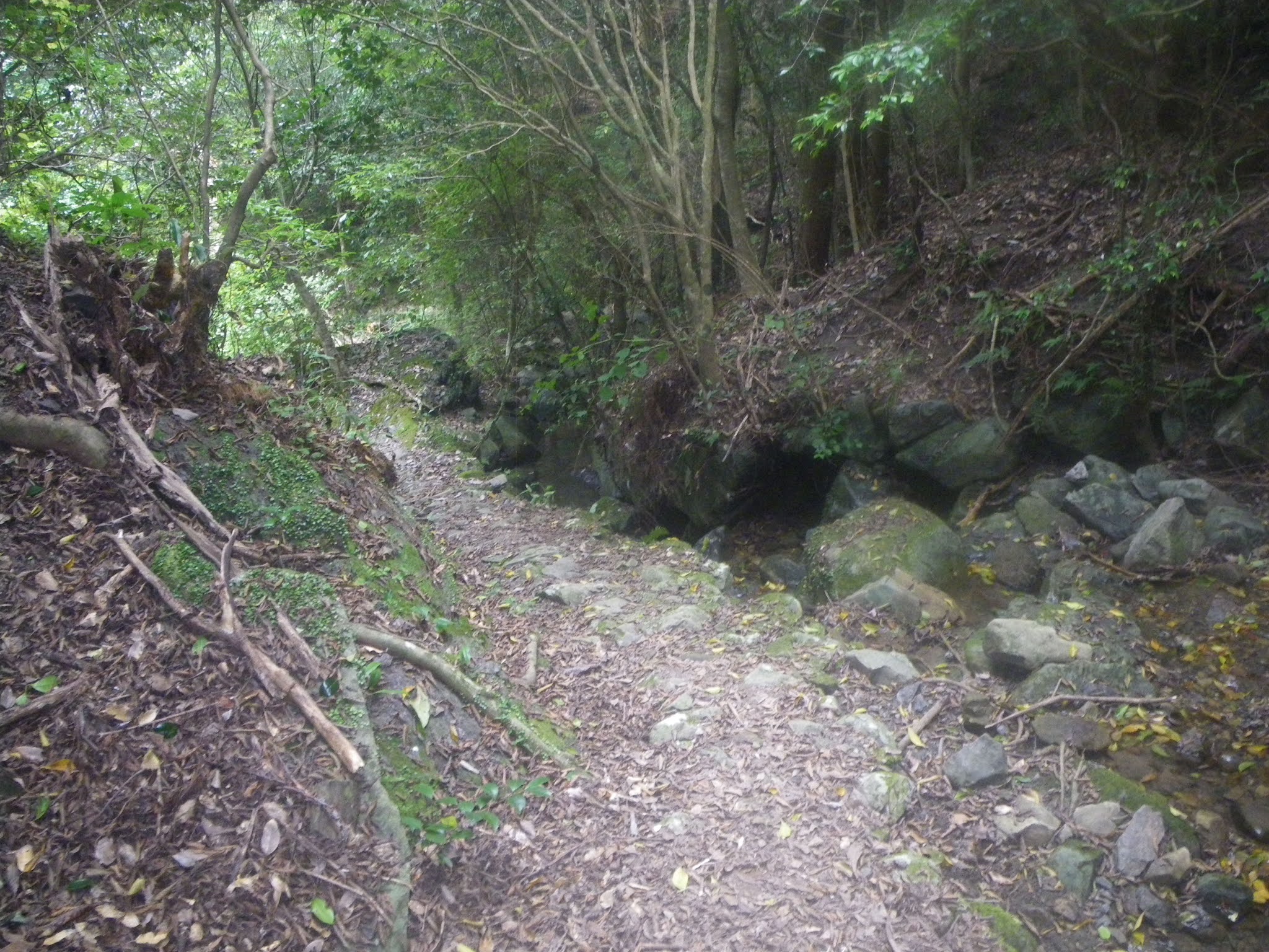 塚地休憩所を離れ横瀬山地を越える青龍寺道に入る。全長およそ1.6km、標高およそ200mの遍路道で、平成28年(2016)秋、国の史跡に指定されている。「文化遺産オンライン」に拠れば、「(土佐遍路道のうち)塚地坂(つかじざか)を越える部分に旧状をとどめている。(中略)塚地坂を南に下って沢と合流する付近の岩塊には丁石としての文字が刻まれ,それに尊像が添え彫りされている。また,坂を下りきった宇佐側の沿道には磨崖仏が存在し,その一部には高岡郡域の中世期の石仏の特徴が見出される。青龍寺境内に慶長6年(1601)の接待供養塔が存在することをふまえると,遍路が一般化する時期以前から信仰の道として利用されていたことが推測される。遺存状況が良好であり,土佐における遍路道の実態を考える上で重要である」ということが指定の因であろうか。とはいえ、肝心な処はすべて見逃した為体(ていたらく)ではあるが、ともあれ青龍寺道をメモする。