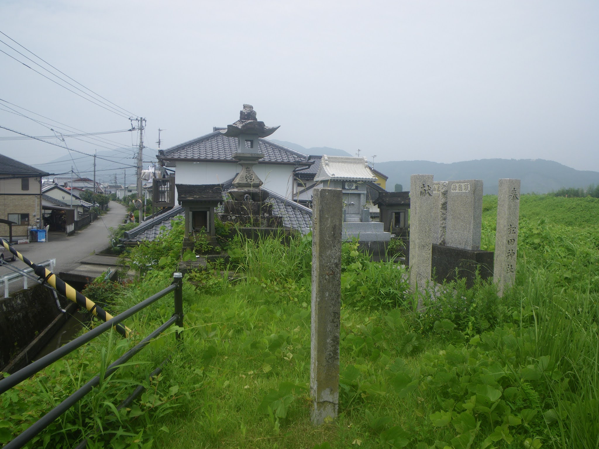 水路(萩谷川)沿いの道を東進、そして南下すると水路が南と西方向に分かれる。その角に3mほどもある常夜灯。現在の遍路道はここを南に進み海岸線に出て宇佐大橋へと向かうが、宇佐大橋が架橋されたのは昭和48年(1973)。今回は架橋以前、お遍路さんが利用した渡船場への遍路道をトレースすることにする。往昔の遍路道はこの角を右折し、萩谷川に架かる灯明1号橋を渡り西進する。