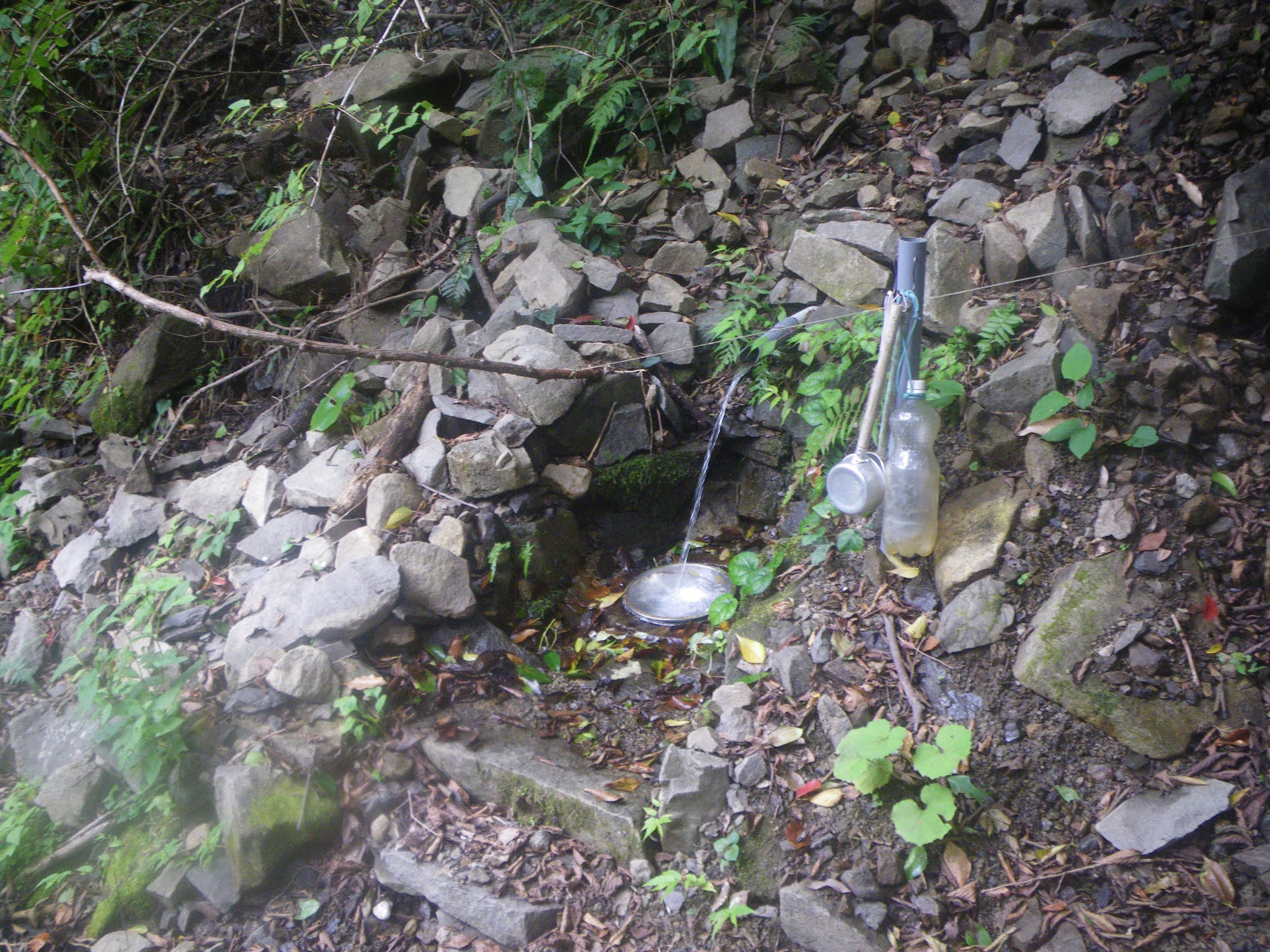 砂防ダムを越えると「遍路道 塚地峠あと600m」の標識がありその先に水場。塚地休憩所にあった大師の泉の案内では、「峠から南に下りるとすぐ楢の林にはいる。その中に」大師の泉があるとする。「すぐ」が「大師の泉」に架かると思い峠近くで大師の泉を探したがみあたらなかったのだが、「すぐ」がかかるのが「楢の林」であり、そのそこから続く林の中に大師の泉がある、と解釈すれば、ここが案内にある大師の泉とも思える。特段の案内はなかった。