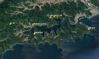仁井田大明神とも称された「仁井田」には浦戸湾を渡る手前で出合った。そこには仁井田と呼ばれる地域があり、立派な仁井田神社が鎮座していた。その際『仁井田」の由来について調べたのだが、浦戸湾に浮かぶツヅキ島に仁井田神社があり、由緒書きには、「伊予の小千(後の越智)氏の祖、小千玉澄公が訳あって、土佐に来た際、現在の御畳瀬(私注;浦戸湾西岸の長浜の東端)付近に上陸。その後神託を得て窪川に移住し、先祖神六柱を五社に祀り、仁井田五社明神と称したという。