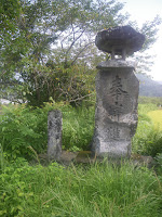 山道に入るとすぐ右手に立方形の石造物。最初は水路施設かとも思ったのだが、墓石兼標石であった。戒名と「行年三十 俗名なみ 播州古川」といったお墓の文字と「五社へ四里 四万十川へ十五り半 あしずりへ二十り てら山へ三十八り いよ境まで四十一り」。「てら山」は土佐最後の札所である第39番延光寺。
