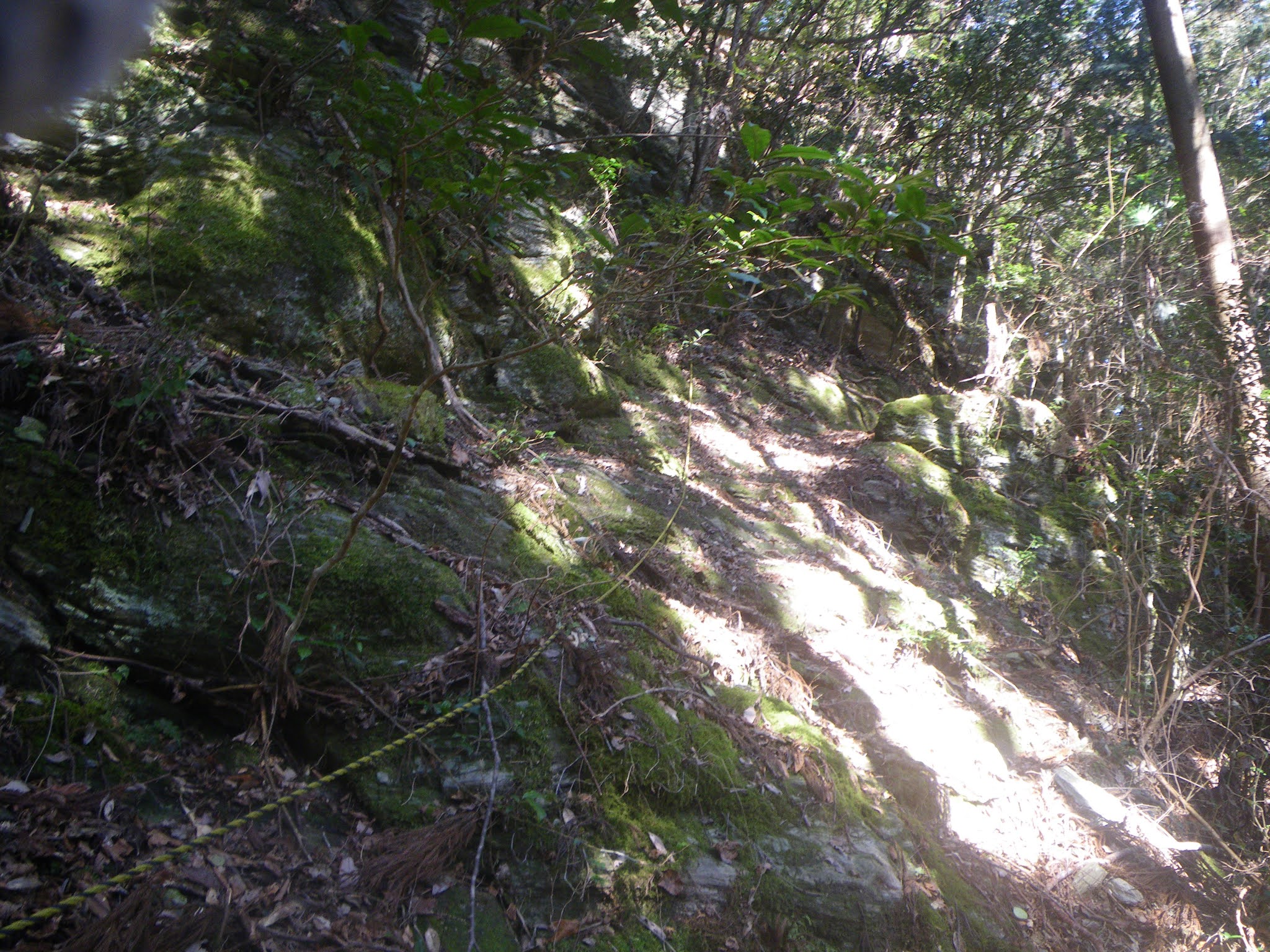 正確に言えば這い上がったときに道筋に出たのだが、後述道が崩れた沢筋であり、道筋らしき「風情」はなく、そこを越え更に上に這い上がったのだが岩場が切れそうもなく、結局再び道を探して下った。