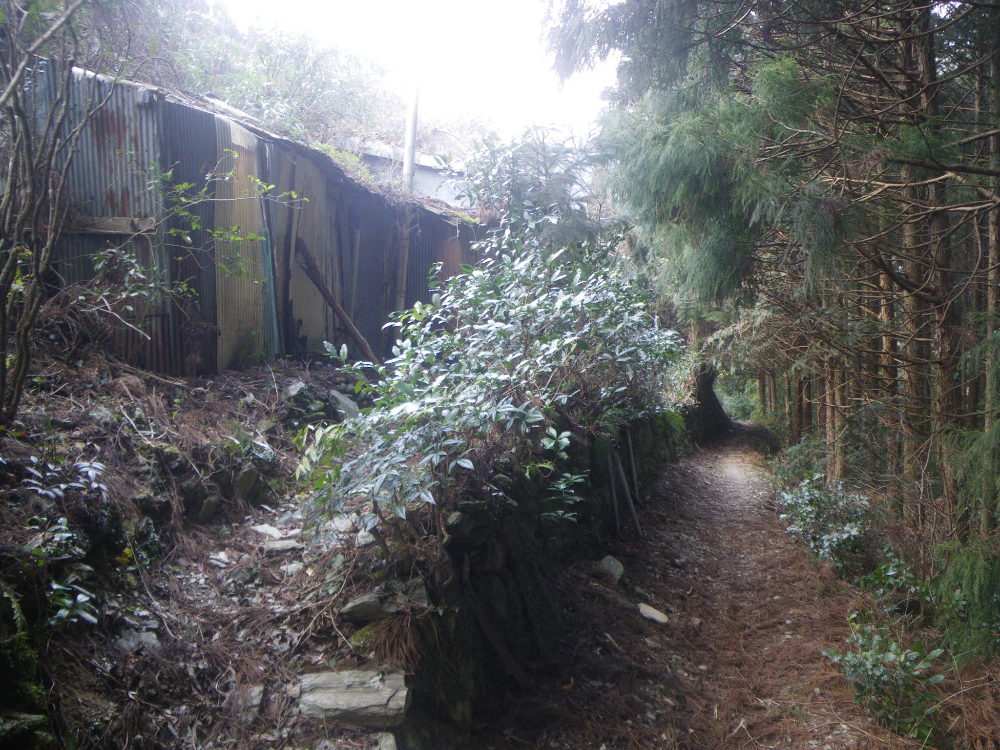 道に出ると辺りは森の中に大きく開かれており、道の前方には石垣が組まれ、そこに建屋が見え里る。なにかの作業場のようにも思える。