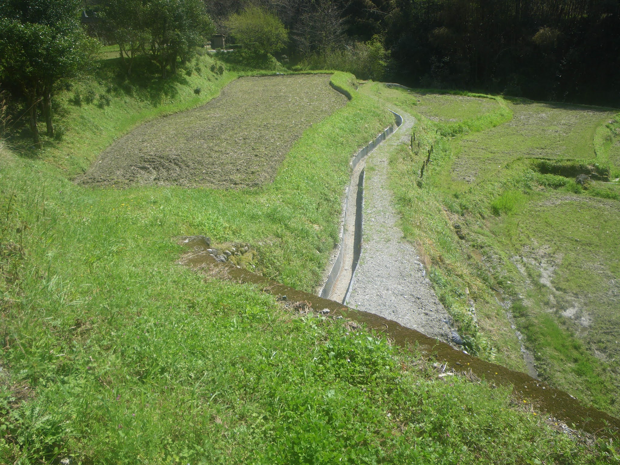 上井散歩はここまで。予想に反し、手堀り隧道の迂回や藪漕ぎもなく結構快適に歩くことができた。距離はおおよそ5キロほどだろうか。樫ノ川の上井堰での取水口の標高は329m。この地が280m。5キロを70m、ということは100mで1.4mほど下ることになる。傾斜角は0.80度といったところだろうか。