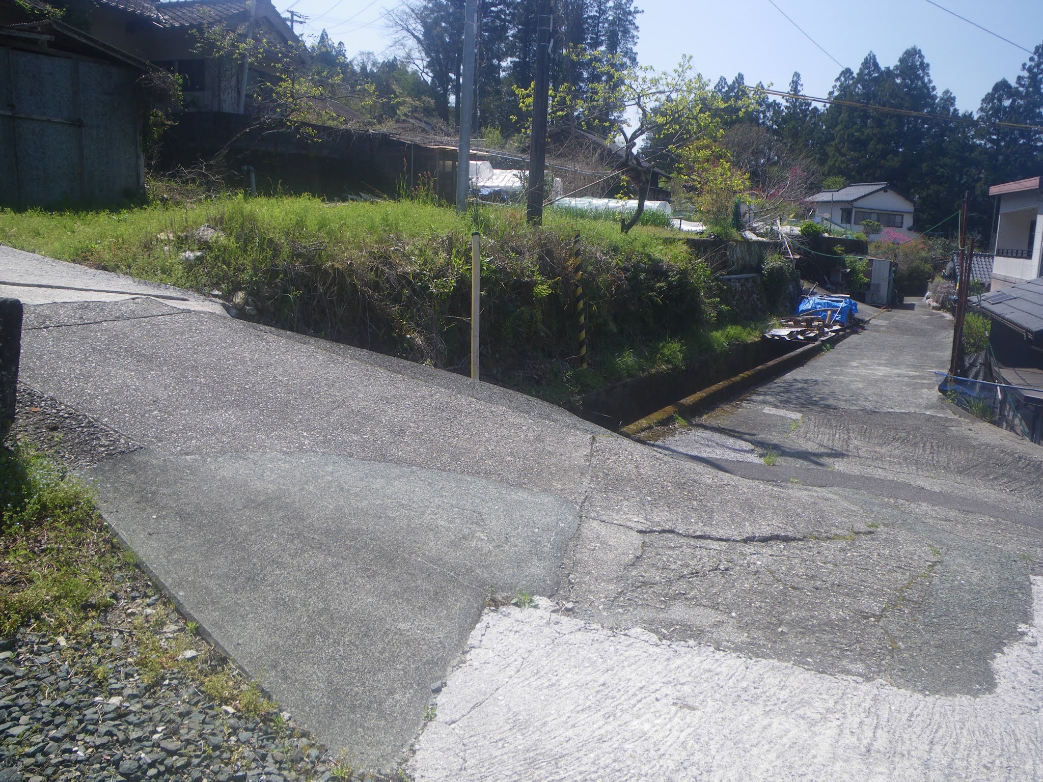 下井は取水堰の場所がはっきりせず、上述の如く十二所神社から下井堰まで追っかけたのだが、その戻りに上を通る土佐北街道に出る道として利用した。下井堰傍から杉林を這い上がろうかとも思ったのだが、国土地理院地図に上述、土佐北街道合流点から樫ノ川に向かって実線が描かれている。川の近くで線は途切れるが、なんとかなるだろうと歩いてみたら土佐北街道に出た。軽々に杉林を這い上がらなくてよかった。なお、国土地理院の地図に記載されていない部分は田圃の部分である。
