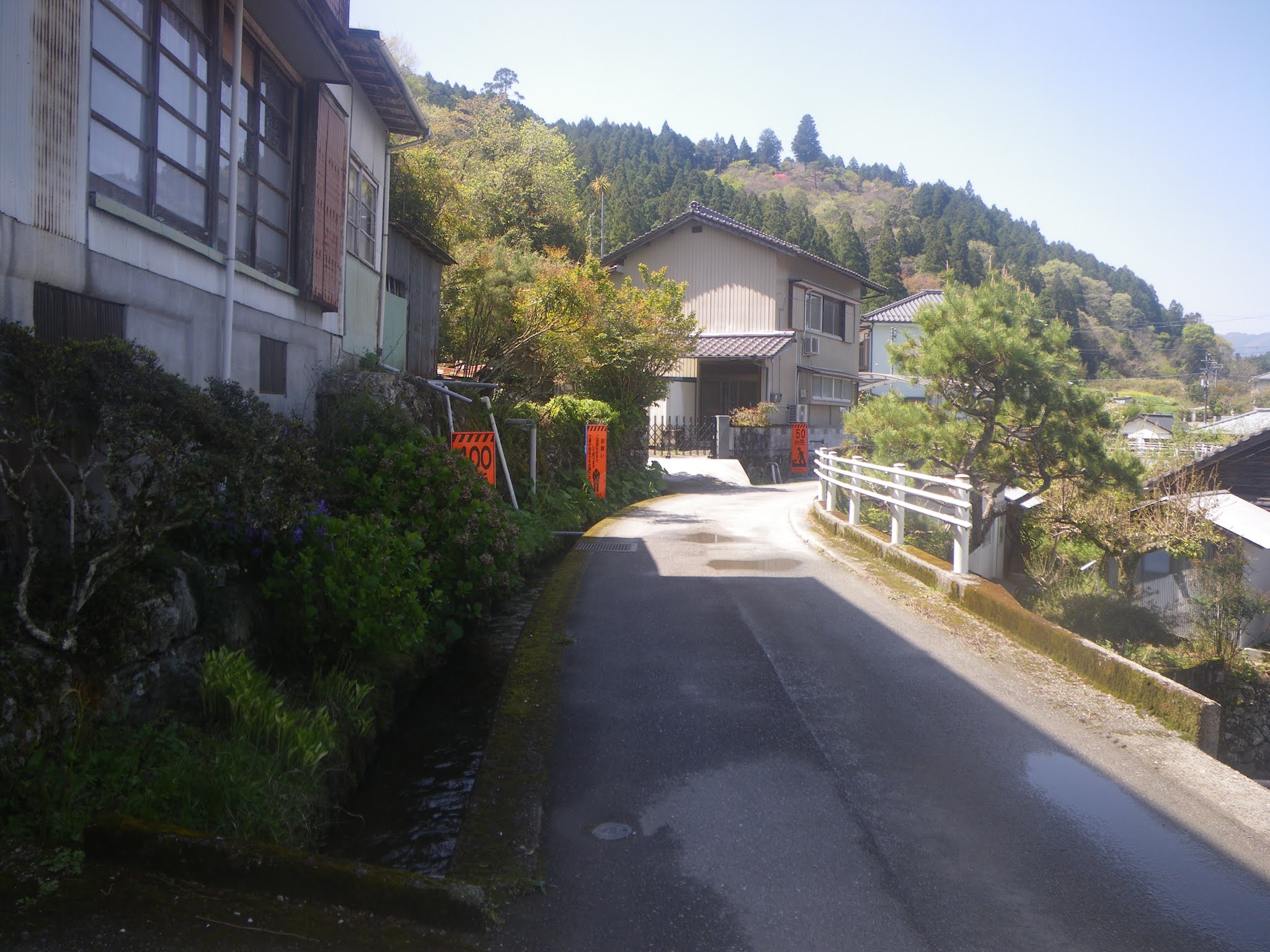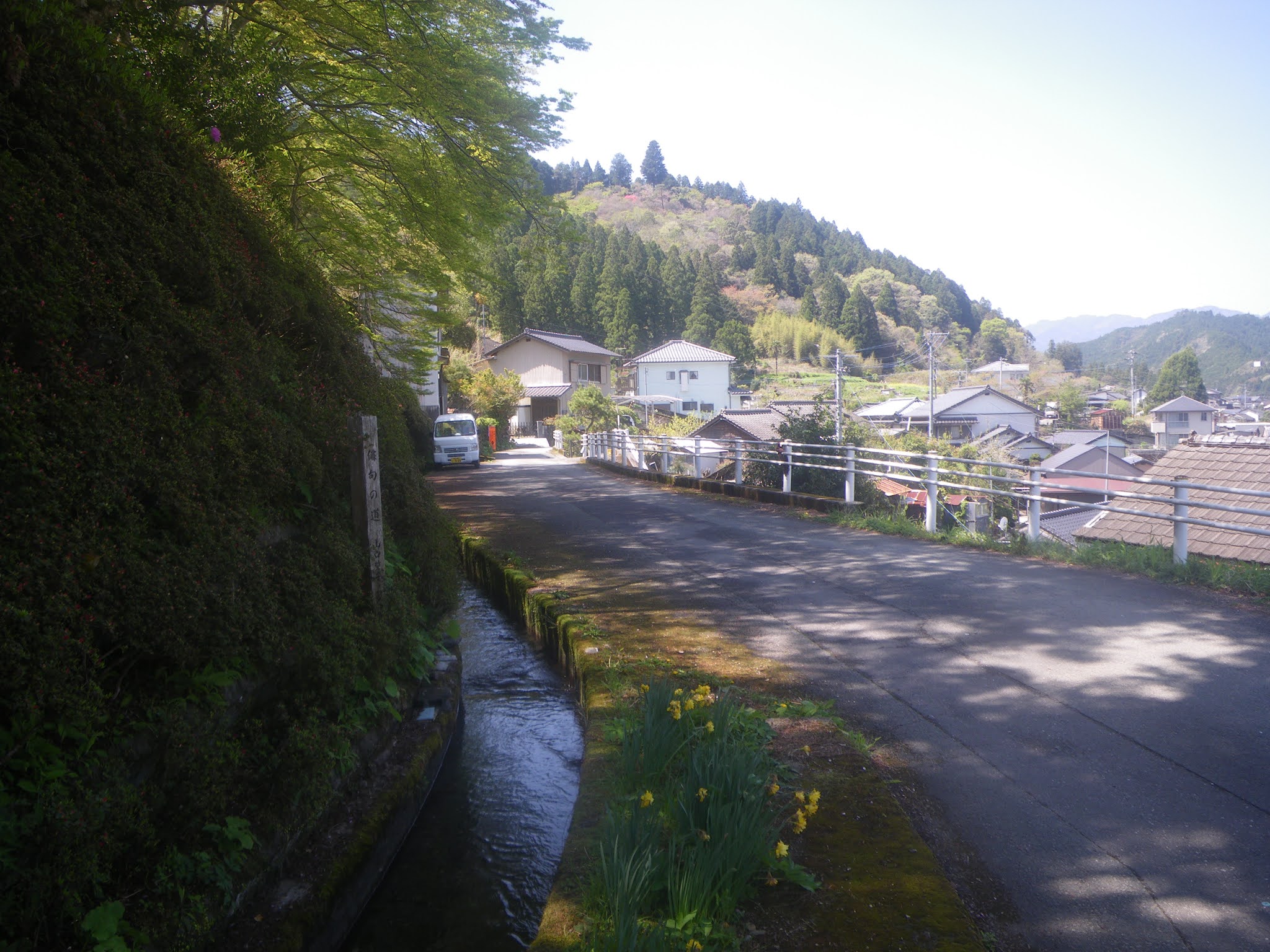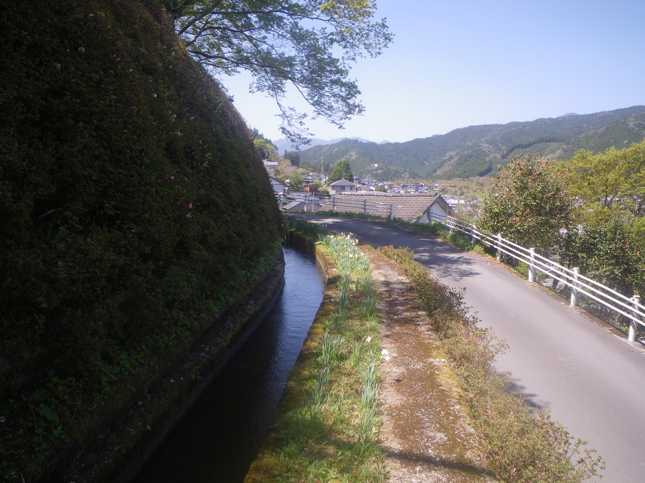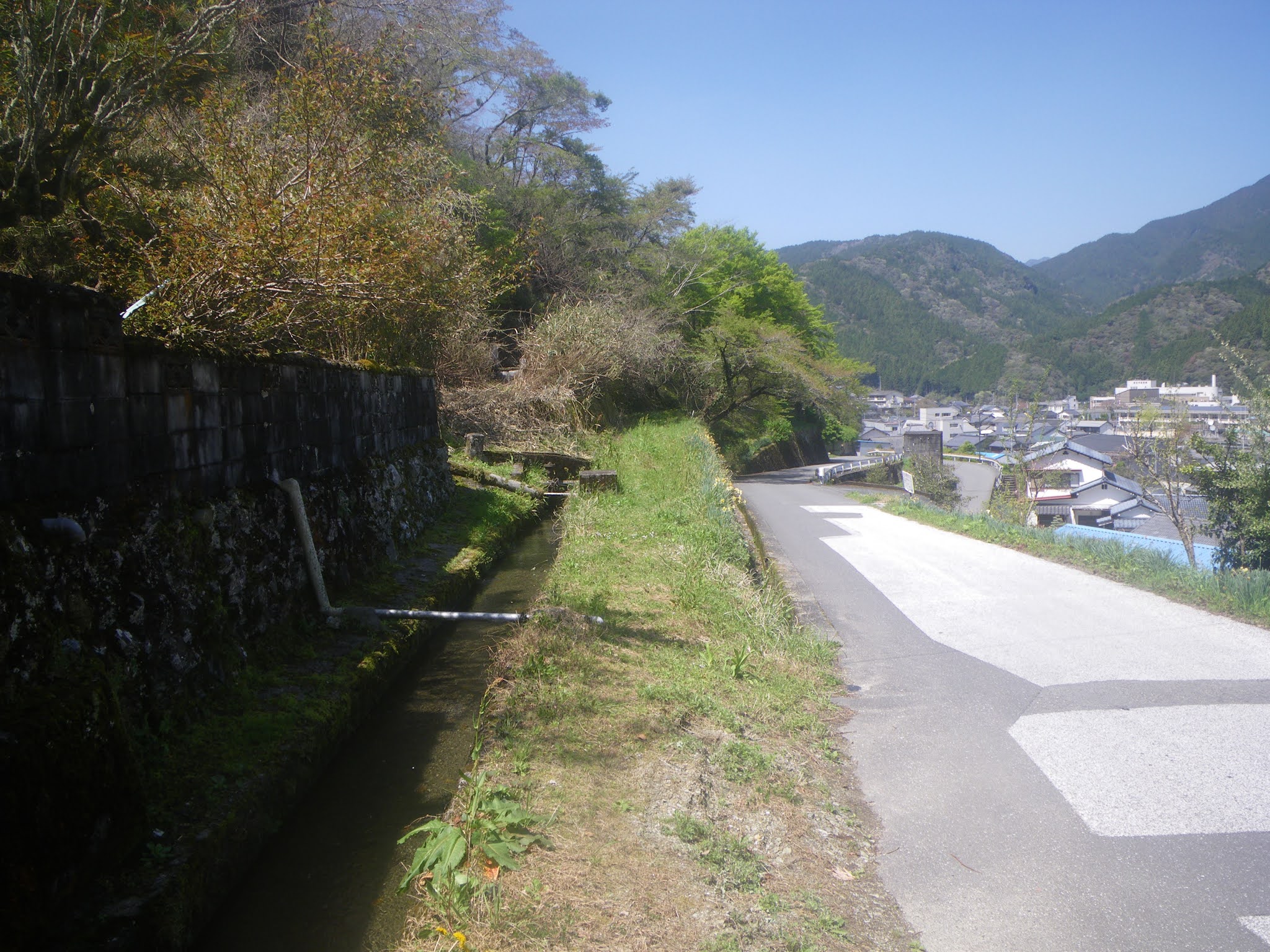 山裾を進む水路は町に近づく。
