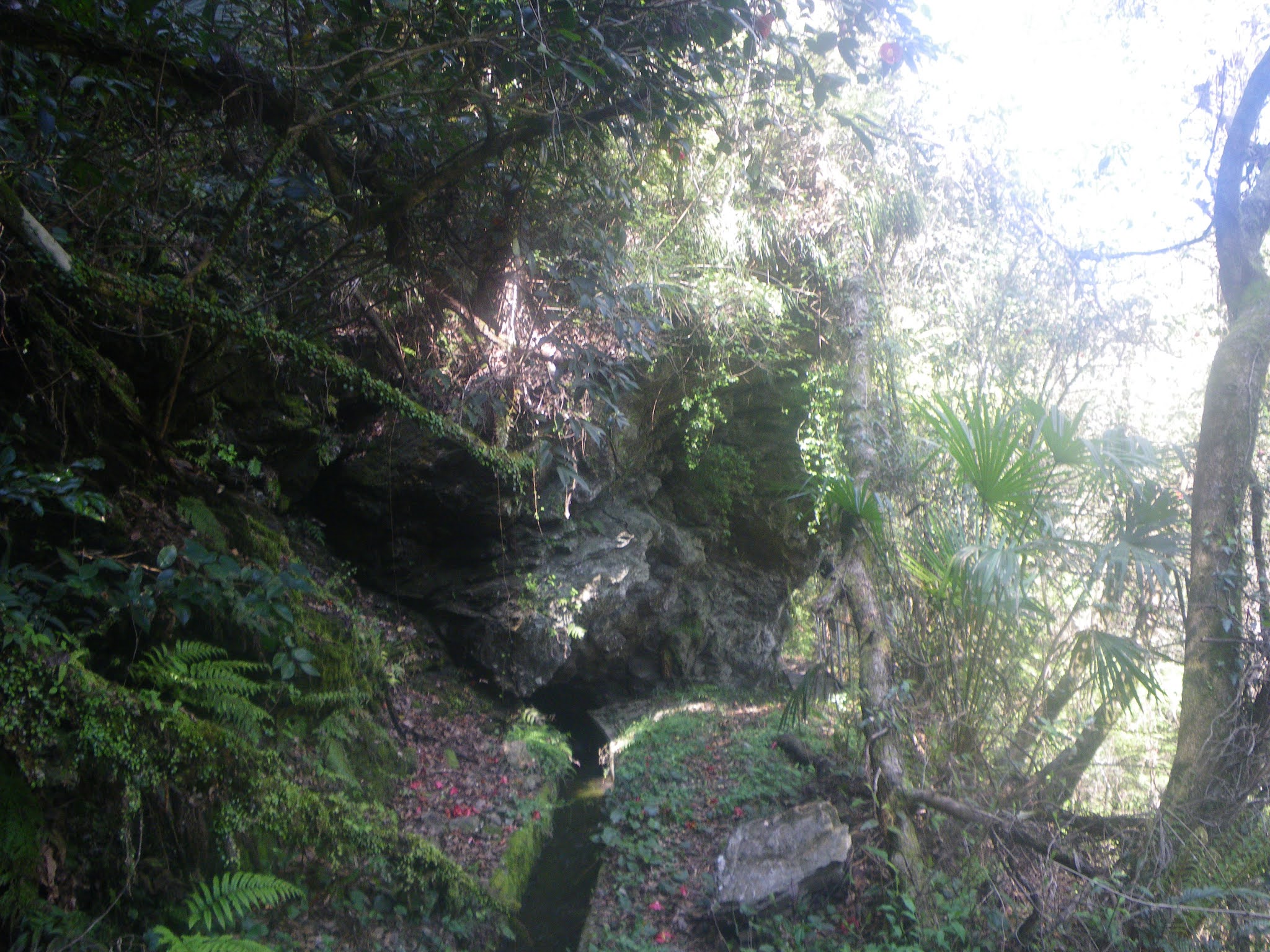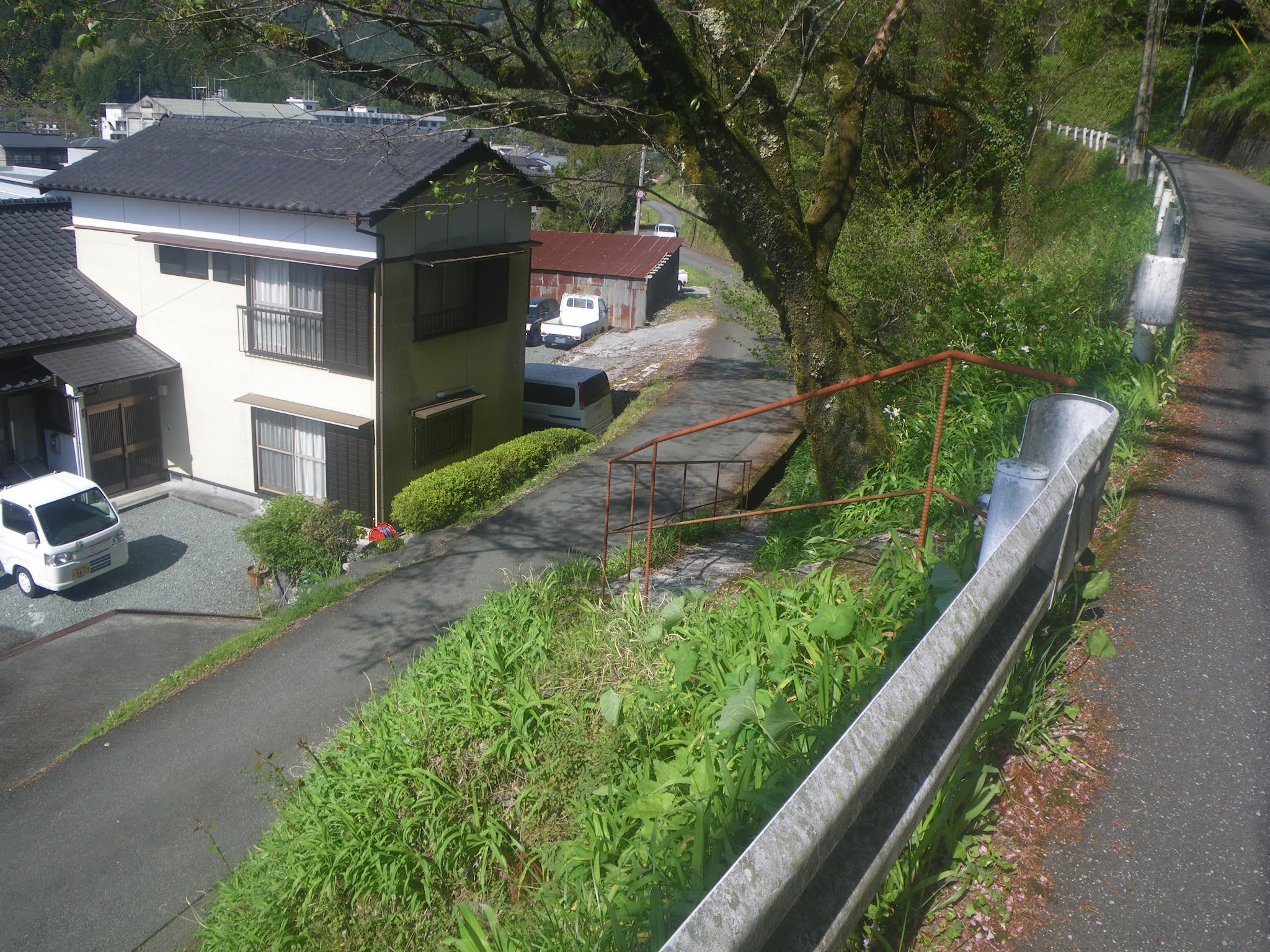 崖を旧道に下る坂道を左に逸れる