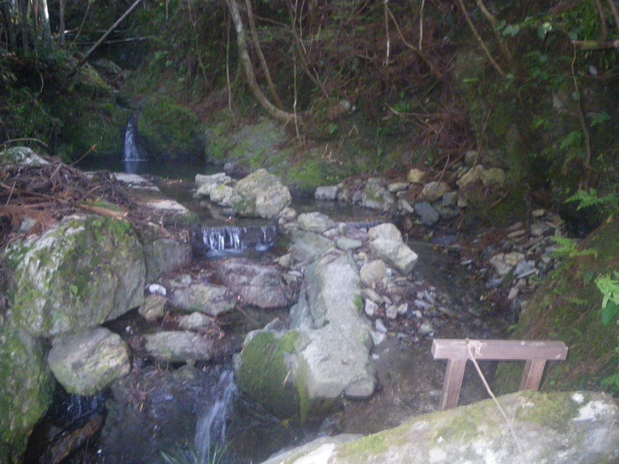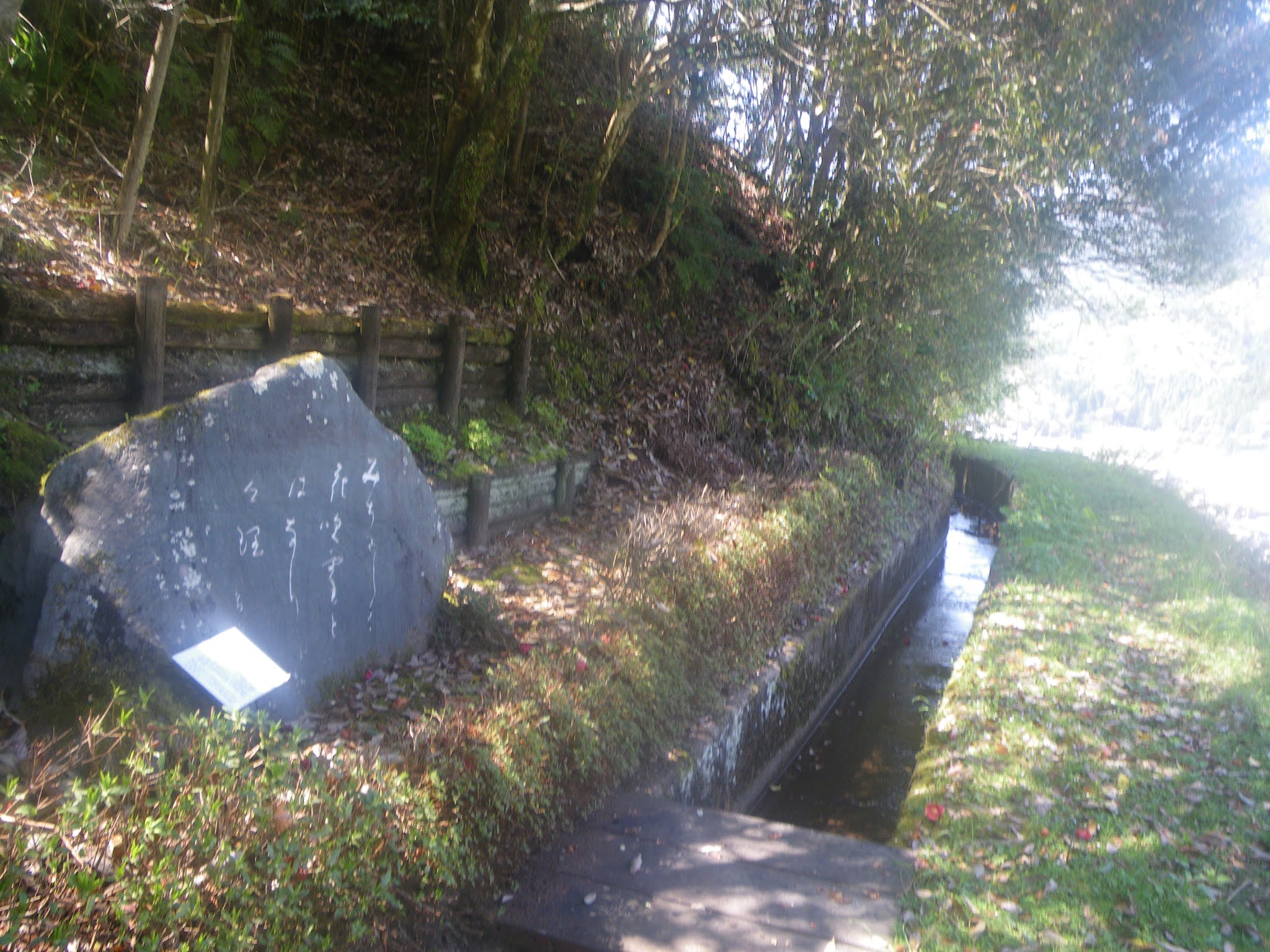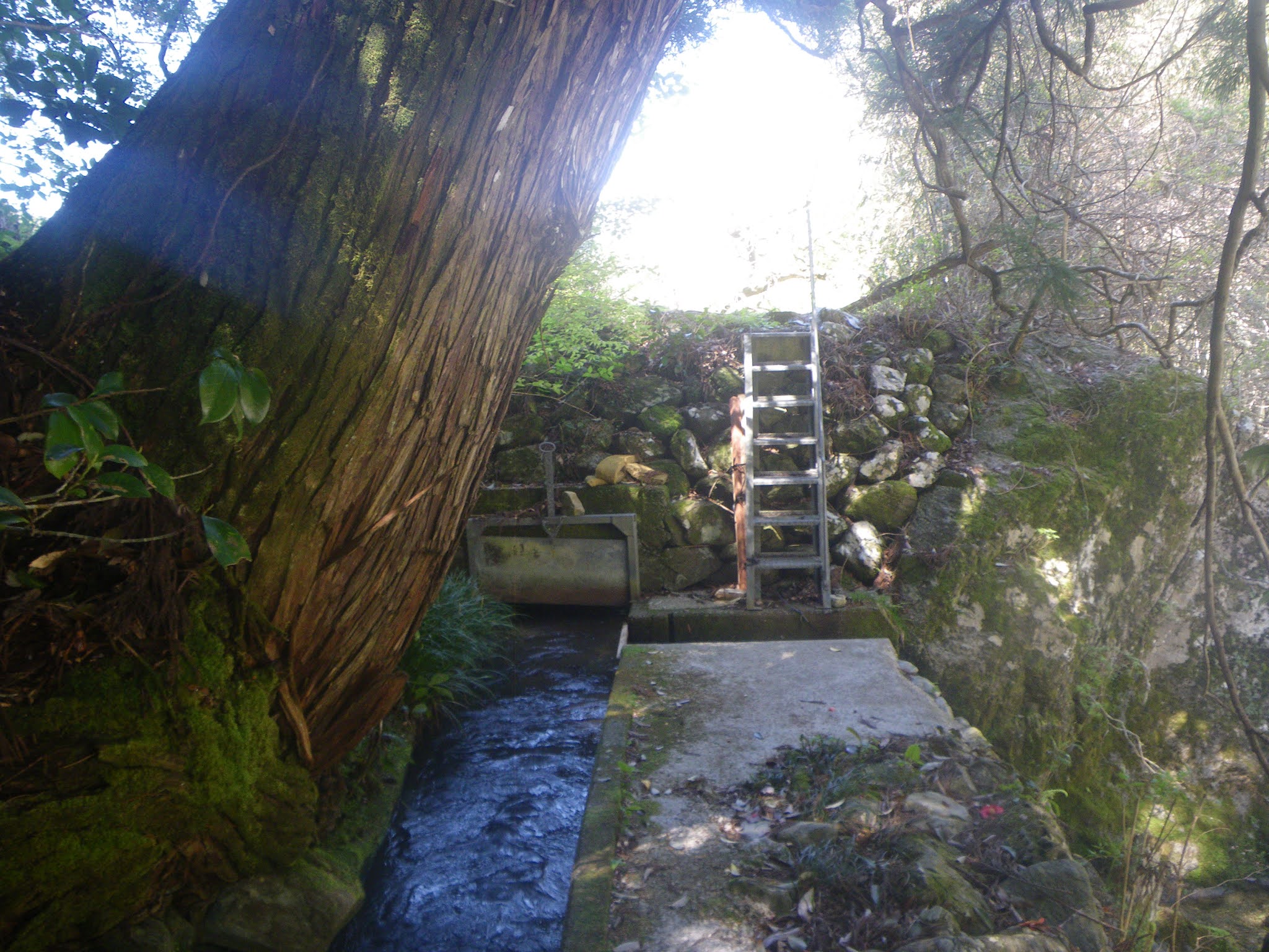 大岩を越えると右手、木々の間から谷側に耕地が見えてくる。大岩から数分で分水門。このあたりから分水された水は灌漑用に落とされているように思える。
