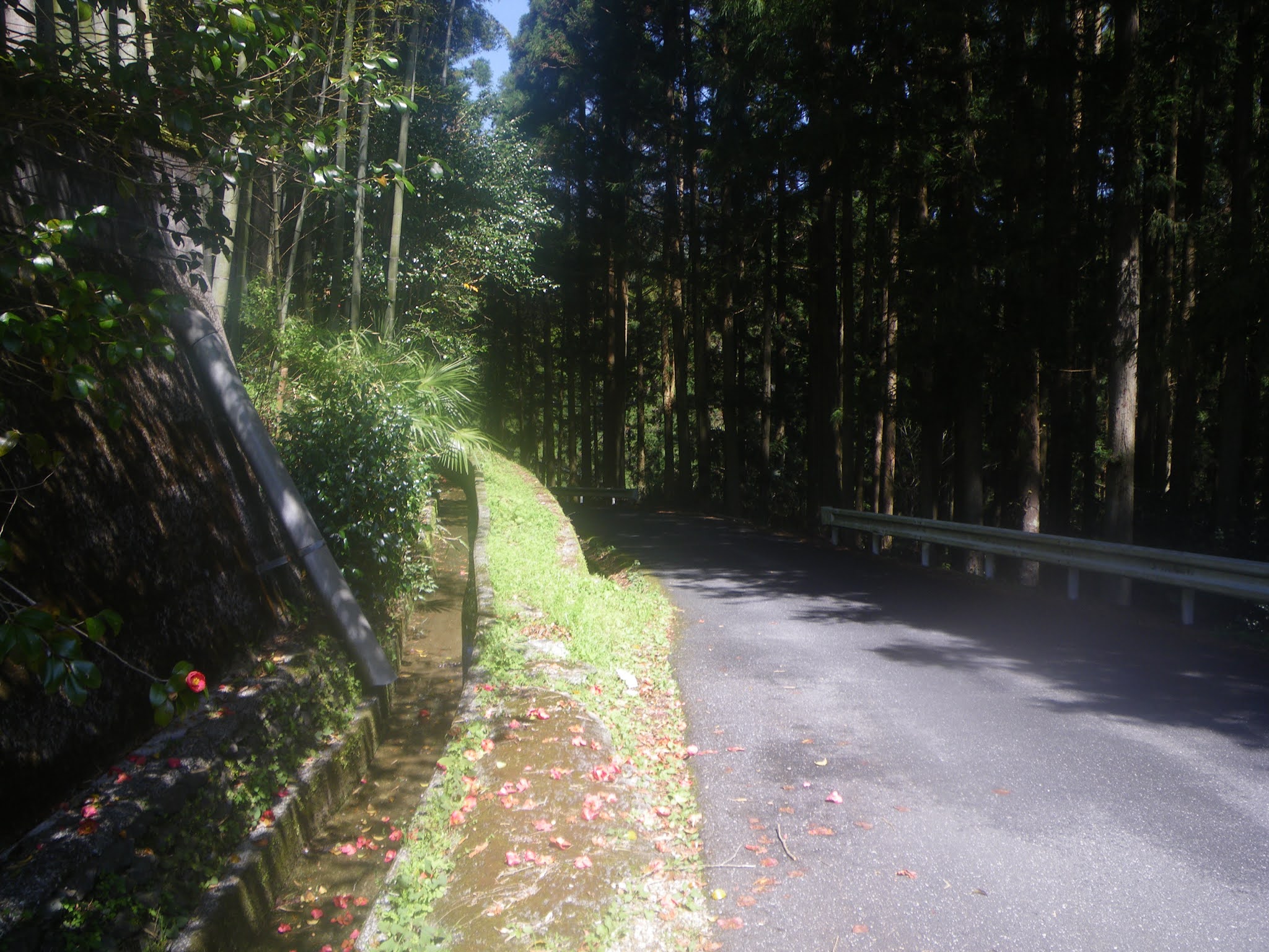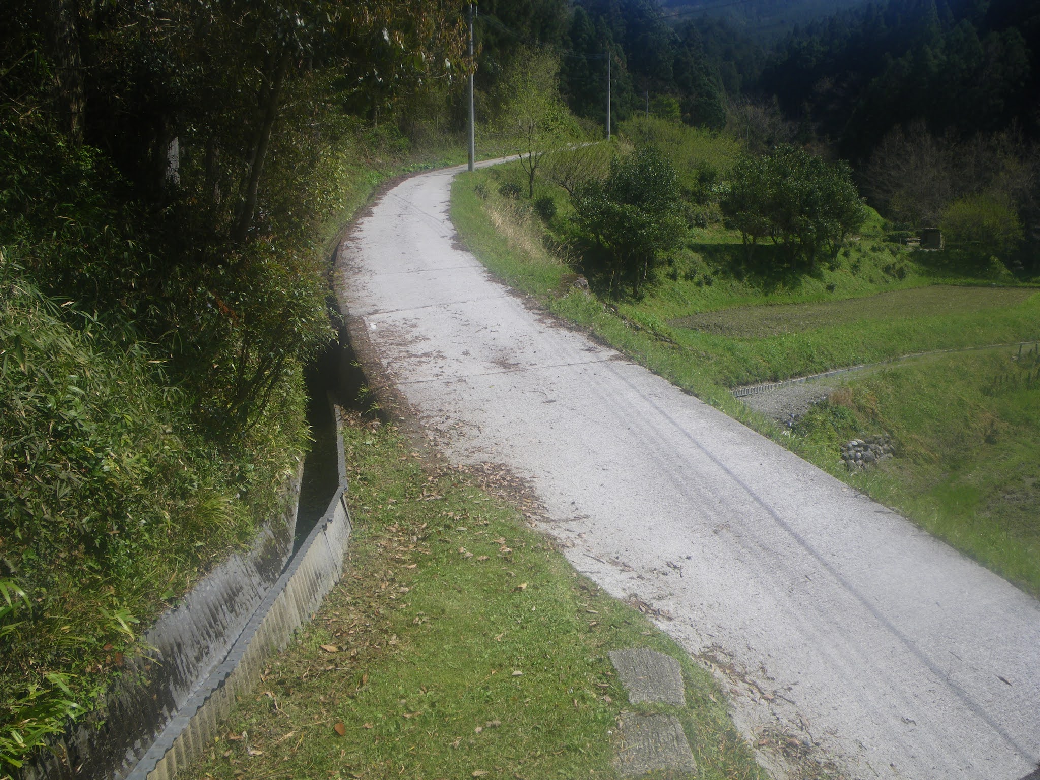 水路はその先で土佐北街道へと緩やかに下ってゆく。