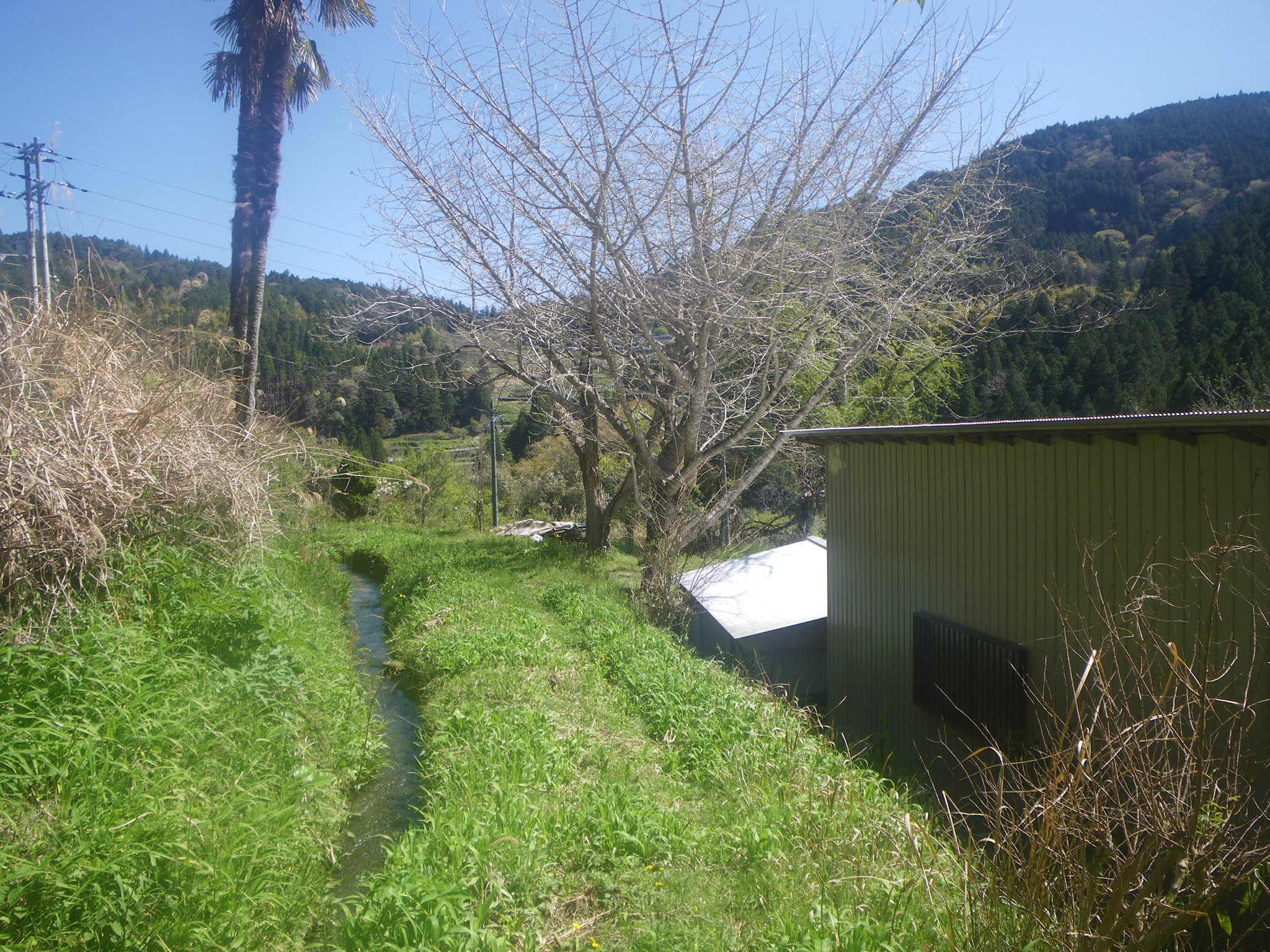 土佐北街道から逸れ山側を水路は進む