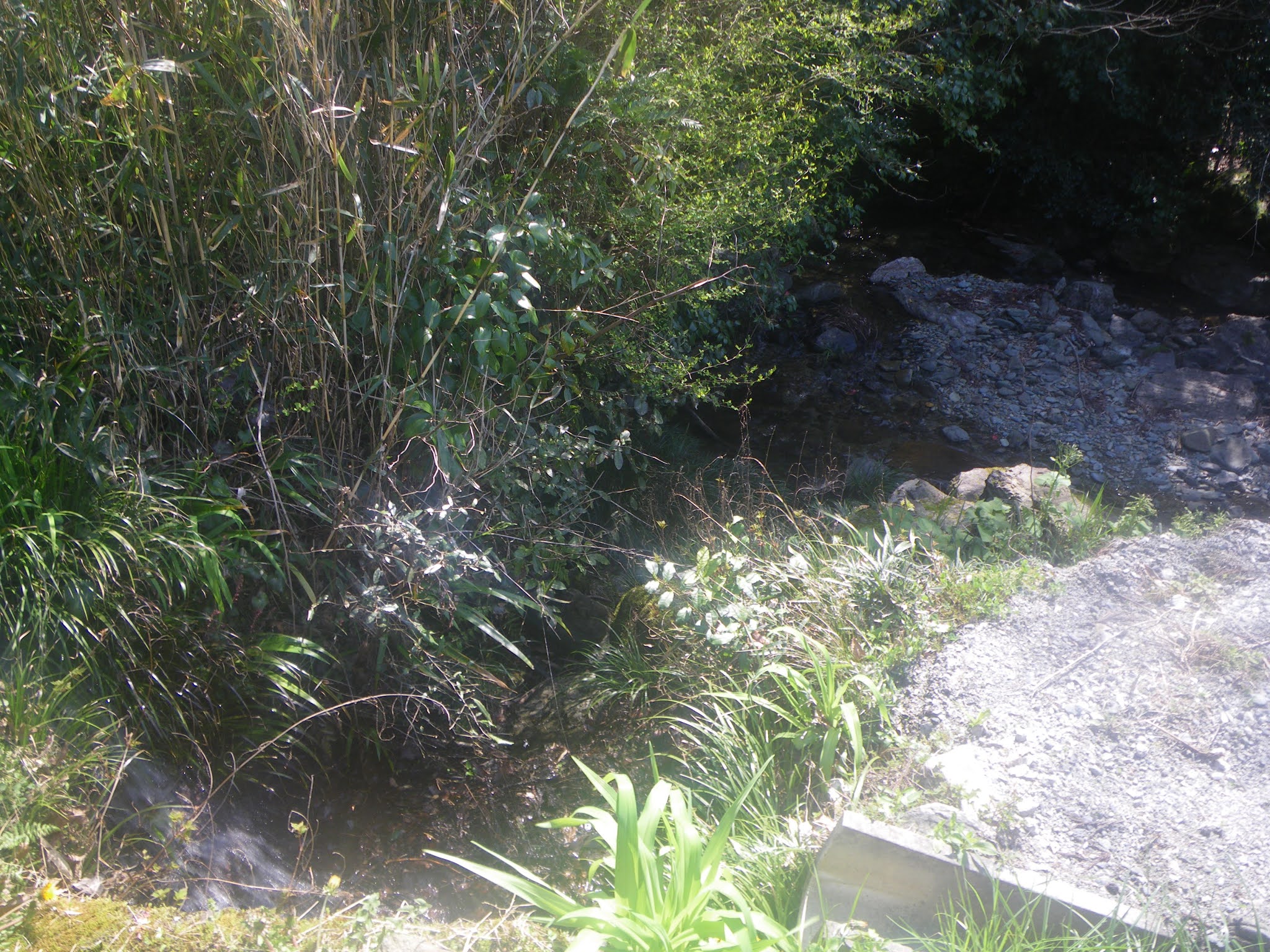 一度谷に落ちた水はその直ぐ下流にある堰で分流され旧国道に沿って西進。少し進んだところで民家裏手に入り込み、その直ぐ先で水路に落ちて終わっていた。