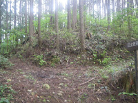 峠の右手には伐採用の作業道が開かれており下に続いていた。峠には久万高原遊山会とは別のグループが立てた「旧土佐道」の標識も立っていた(A標識0)。峠には石仏が祀られるとのことだが見つけることはできなかった。