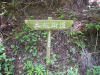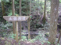 歩きはじめて数分で林道から少し奥まったところに「土佐街道」の標識(標識4)が見える。ここで林道から左に逸れ山道に入る。