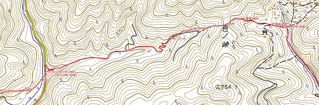 道迷い地点へのピストンに時間がかかり、上記時間とのギャップが大きいのは、土径と大きな林道が合流する箇所から先に進んだのが午前11時を過ぎたため。